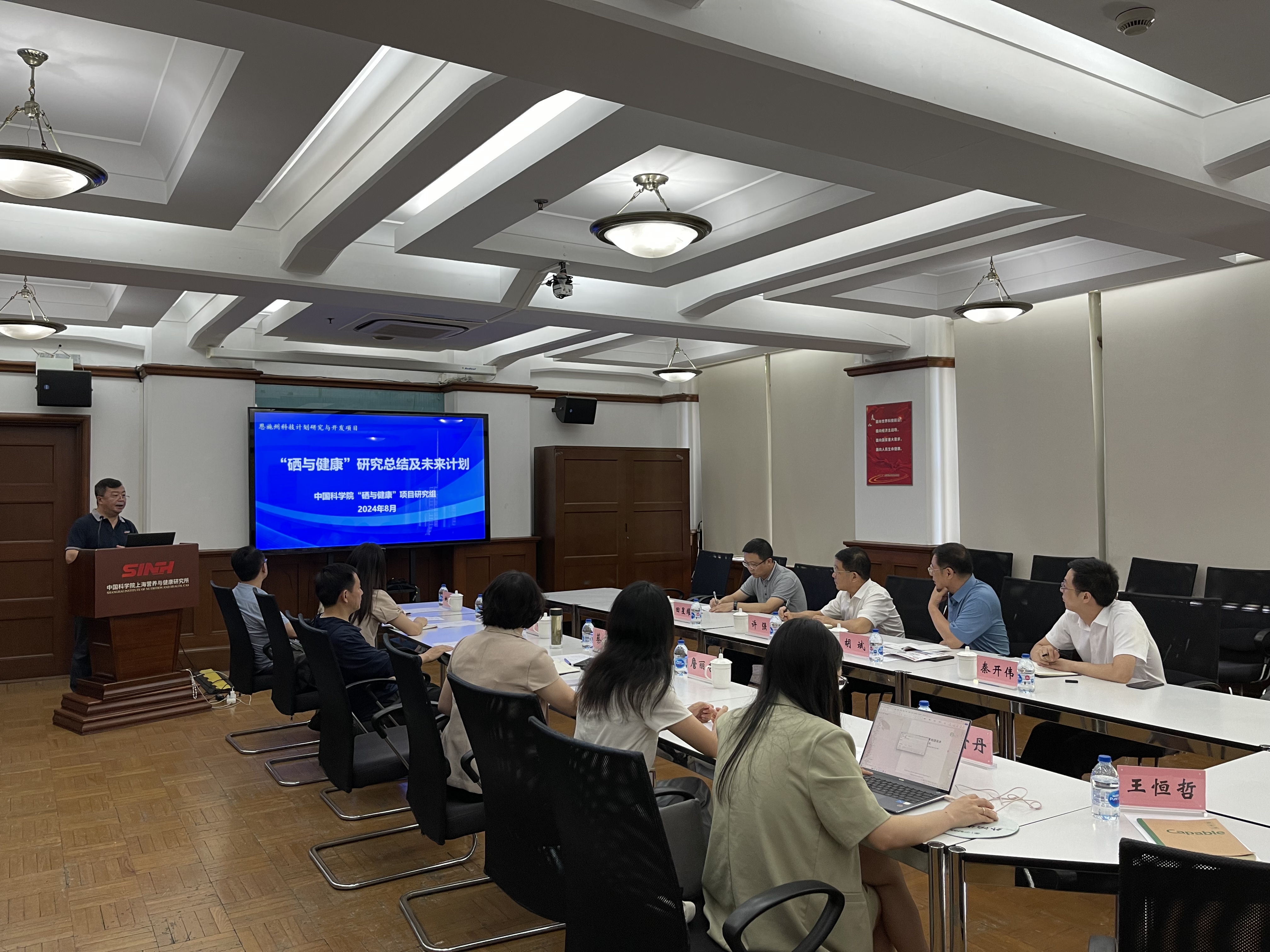 8月9日,湖北省恩施土家族苗族自治州人民政府副州长许强,州科技局党组成员、副局长胡斌一行到访中国科学院上海营养与健康研究所,听取由营养与健康所牵头,中国科学院上海有机化学研究所和中国科学院城市环境研究所等单位共同承担的恩施州科技计划研究与开发项目“硒与健康”专项成果进展汇报。营养与健康所副所长汪思佳接待来宾,项目负责人蔡澎研究员、课题负责人及骨干、成果转化与合作处负责人等参加会议。