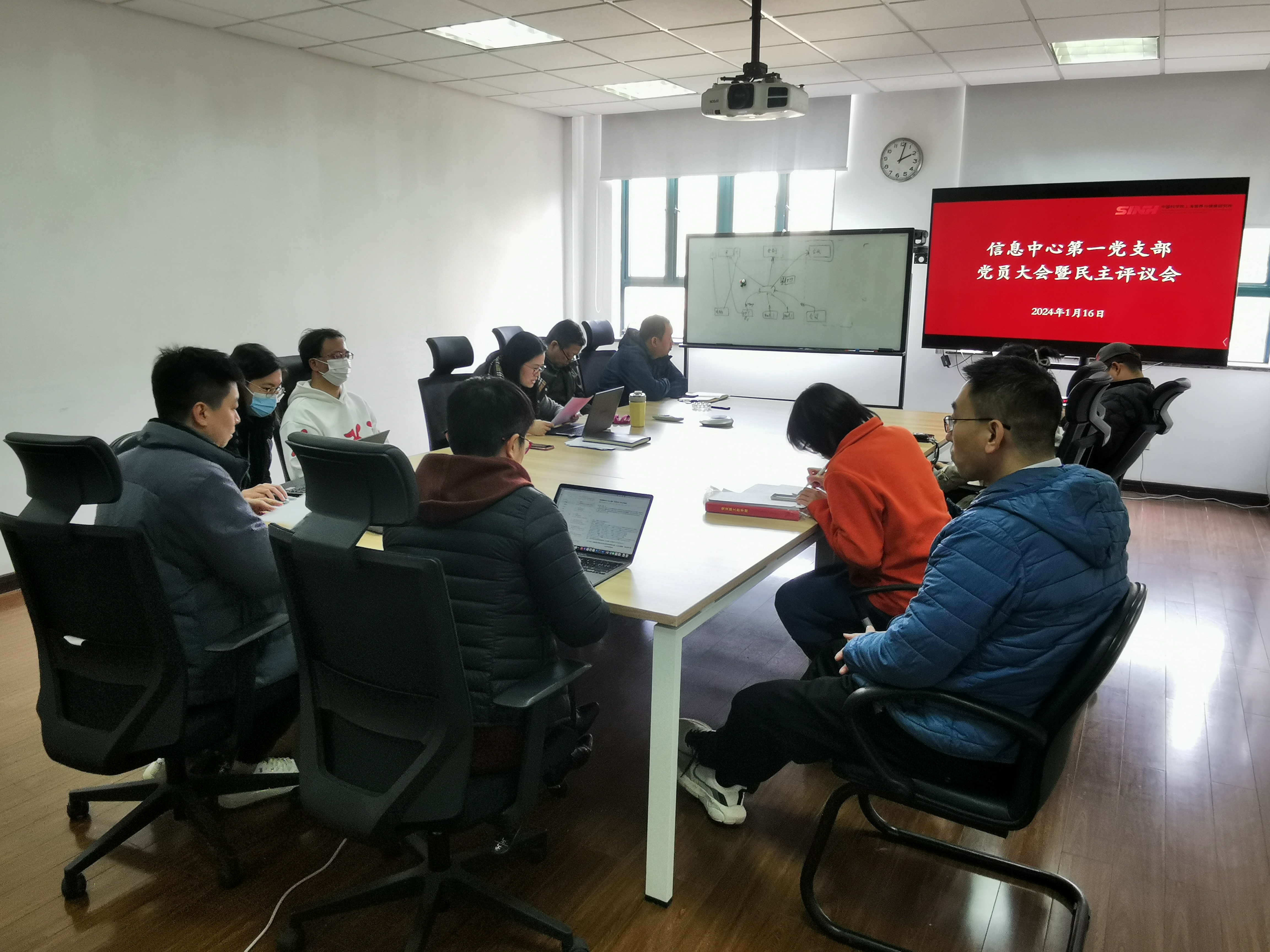 1月18日下午,中国科学院上海营养与健康研究所信息中心第一党支部召开党员大会暨2023年度民主评议会,信息中心主任于建荣作为支部党员参加会议,会议由支部书记沈东婧主持。