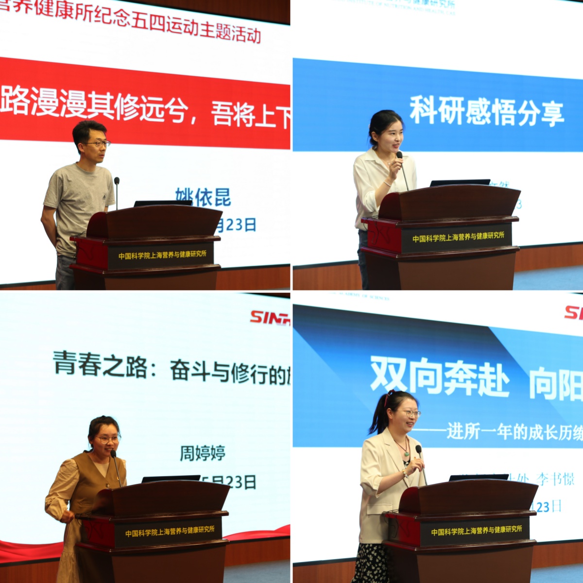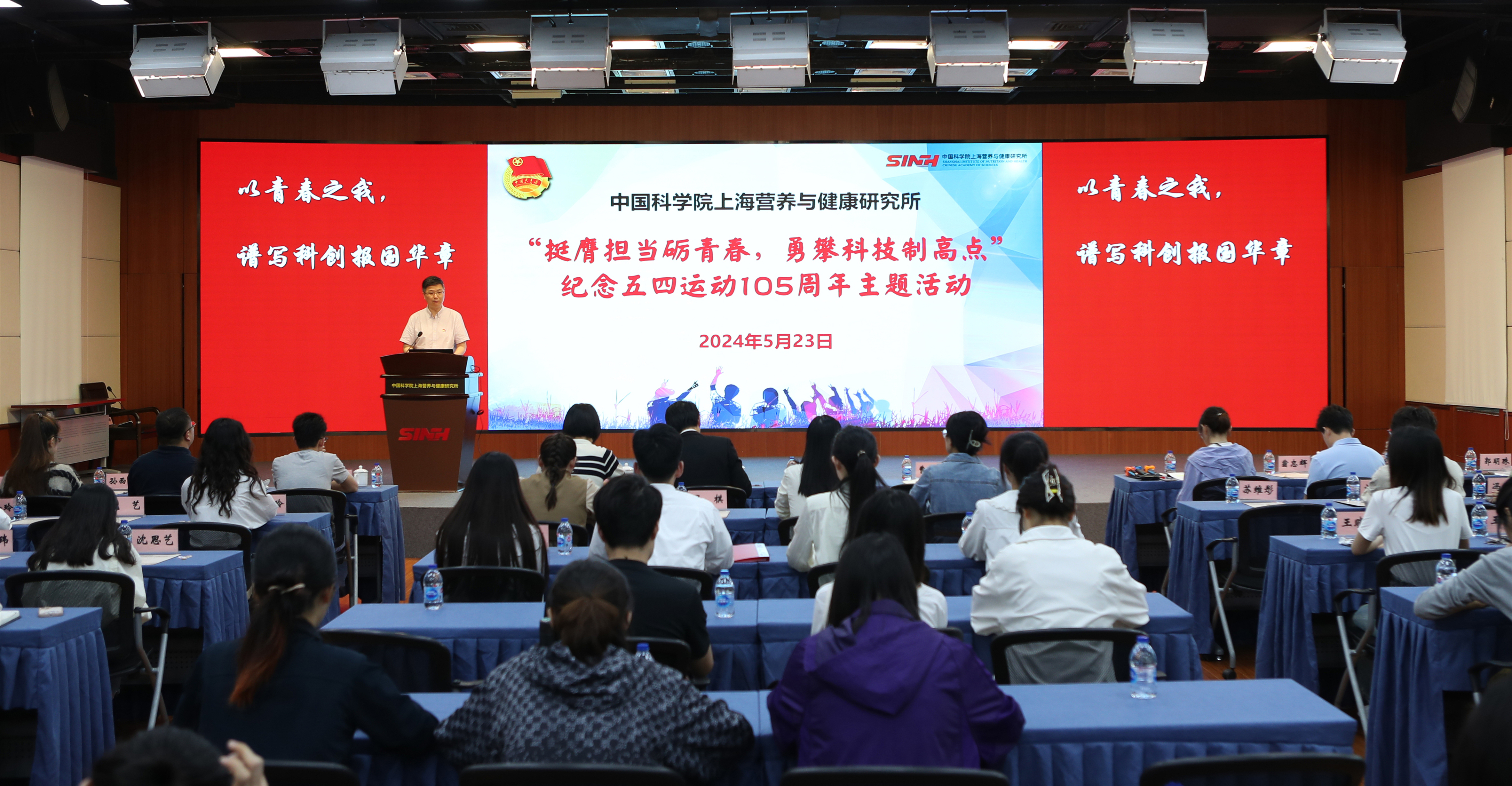 5月23日,中国科学院上海营养与健康研究所举行“挺膺担当砺青春,勇攀科技制高点”纪念五四运动105周年青年主题活动。上海市科技团工委书记胡元颖,中国科学院上海分院人事人才处副处长、机关与直属单位团委书记朱泰来,中国科学院上海营养与健康研究所党委书记瞿荣辉,纪委书记、工会主席曹永出席活动。各团支部代表、优秀青年、研究生及青年职工代表等100余人参加?;疃捎虢】邓盼榧枪司Ье鞒?。