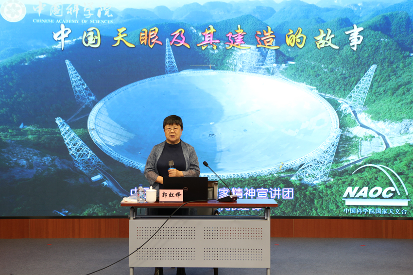 中国科学院科学家精神宣讲团成员高级工程师郭红锋受邀作《中国“天眼之父”南仁东的故事》专题报告。她声情并茂地讲述了南仁东先生倾其一生投入“中国天眼”建设的故事以及22年建设历程中的典型事例,激励青年用五四精神之火淬炼自己,传承科学家精神,以干事创业的热情和砥砺奋进的信心,在各种重大科技攻关任务中担重任、挑大梁,书写出亮眼的青春答卷。