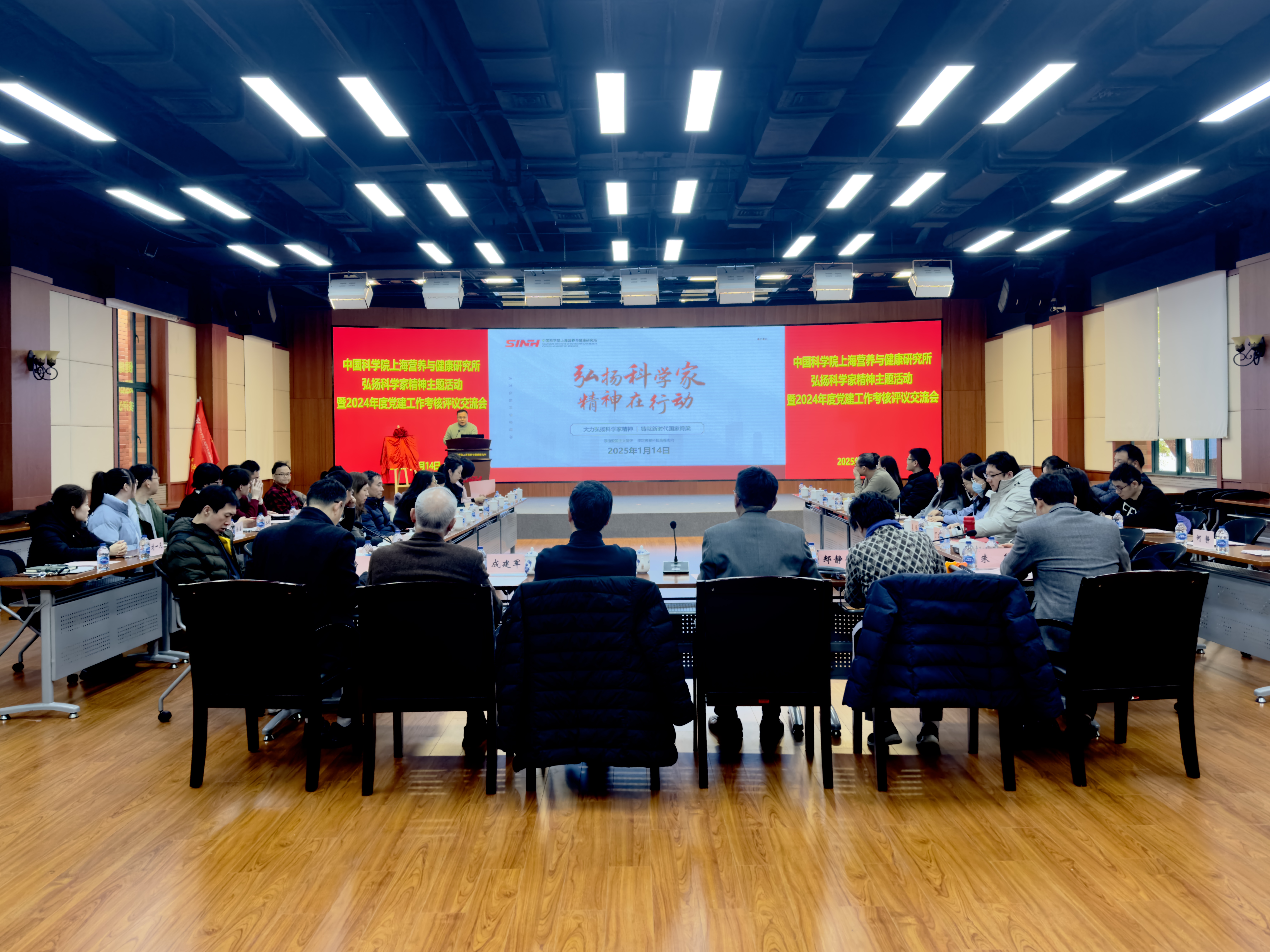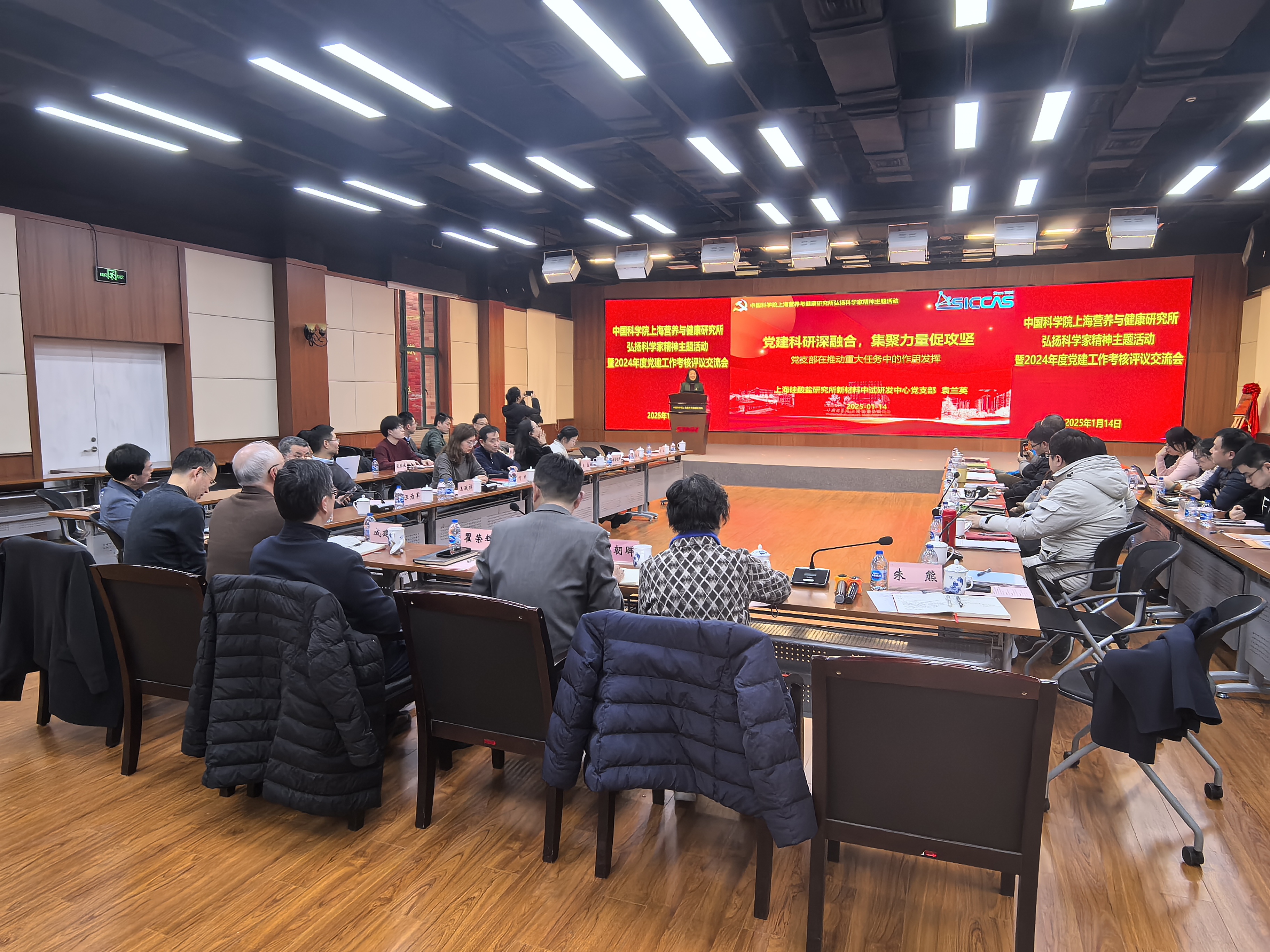 为总结过去一年党建工作成效,谋划夯实新一年工作,1月14日下午,中国科学院上海营养与健康研究所召开弘扬科学家精神主题活动暨2024年度“四强”党支部考核评议会。中国科学院上海分院纪检组组长、分党组成员、沪区党委副书记、纪委书记孔朝晖,上海分院党建督导组组长成建军、郏静芳,上海分院机关与直属单位党委书记、综合办公室主任朱熊出席会议。研究所党委书记瞿荣辉、各基层党组织负责人及代表等参会,会议由研究所纪委书记曹永主持。