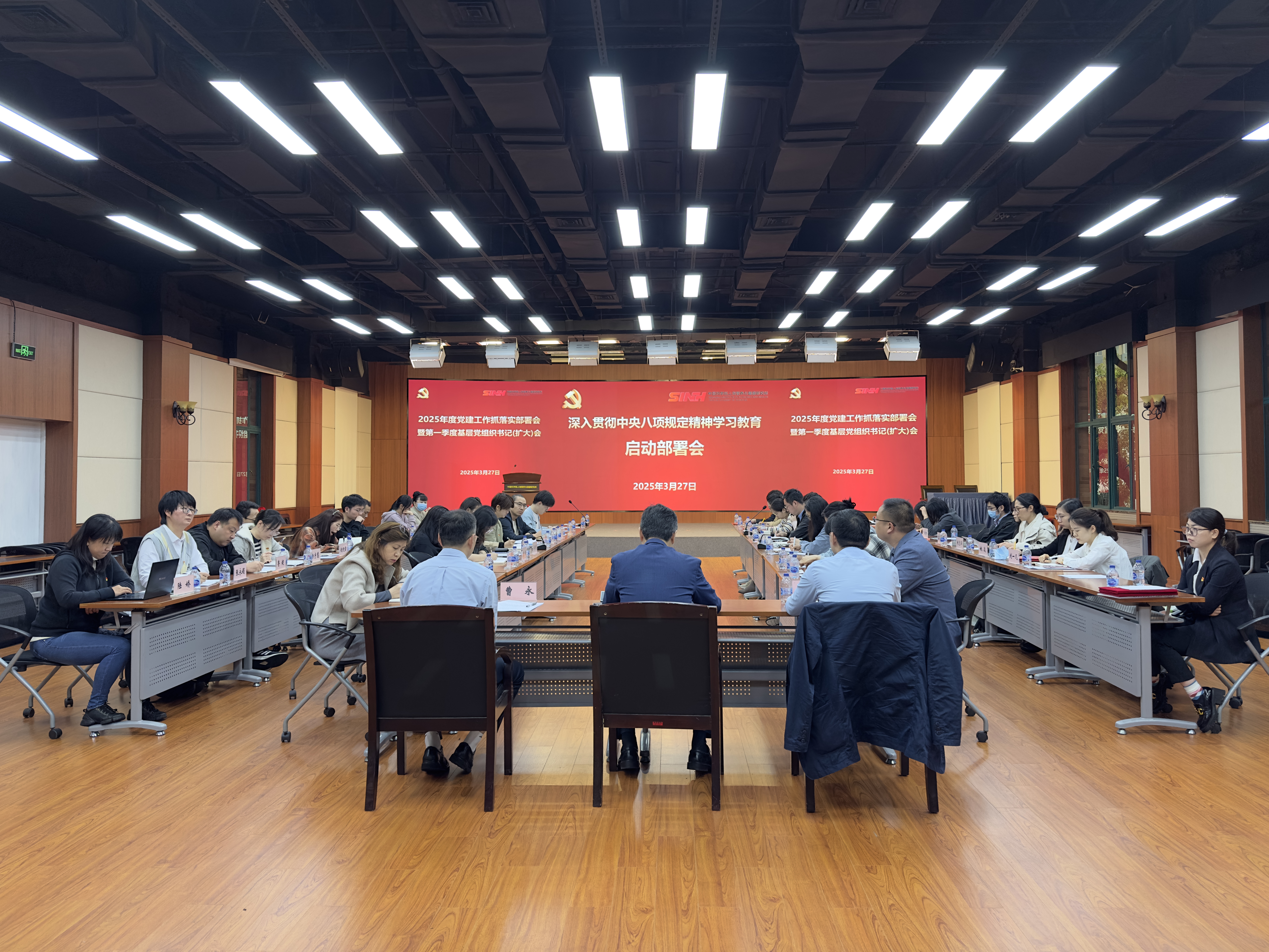 3月27日上午,中国科学院上海营养与健康研究所召开2025年度党建工作抓落实部署会暨第一季度基层党组织书记(扩大)会,启动部署深入贯彻中央八项规定精神学习教育。党委书记瞿荣辉、各党(总)支部书记、副书记等50余人出席会议?;嵋橛杉臀榧遣苡乐鞒?。