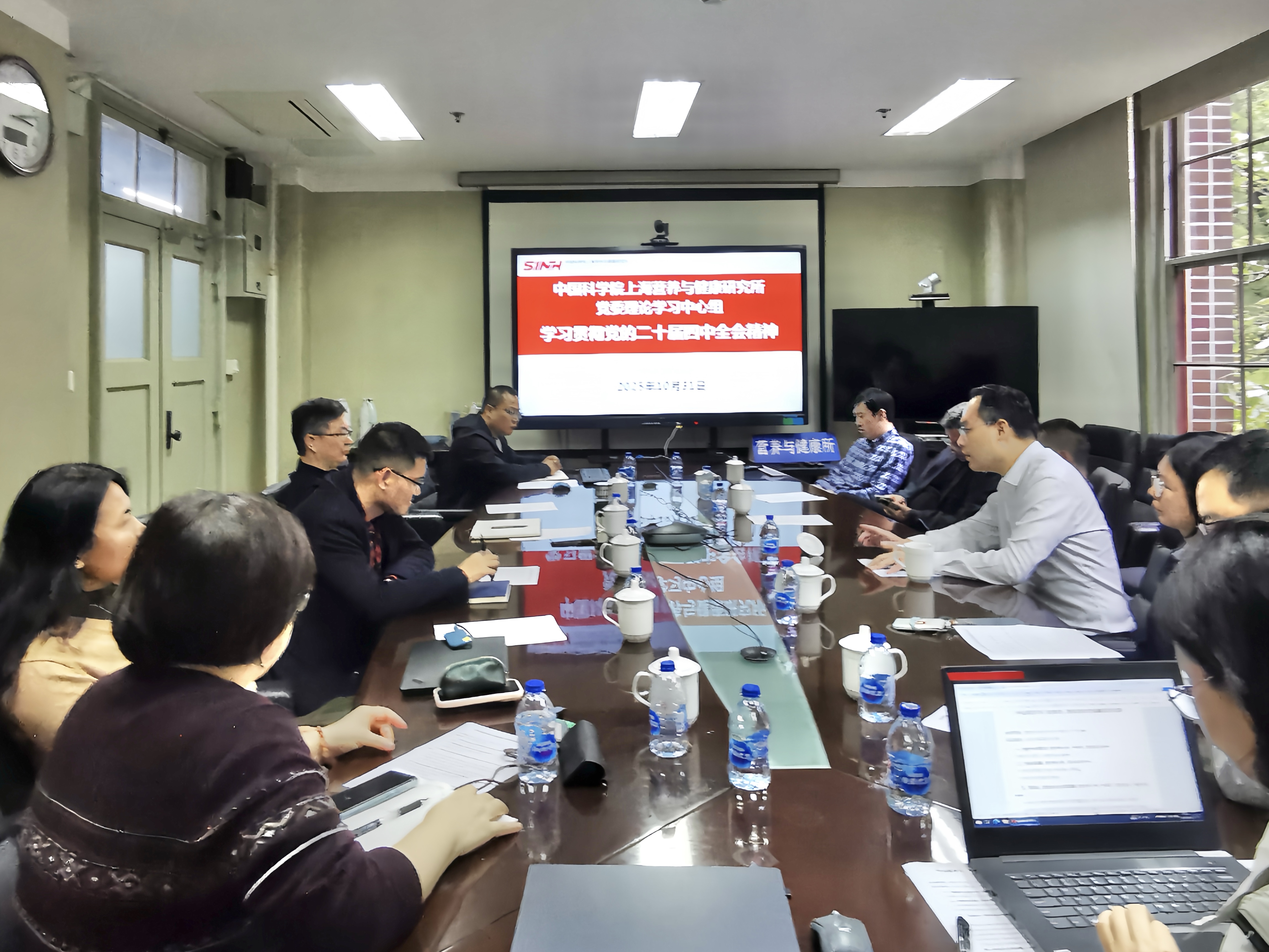10月31日,中国科学院上海营养与健康研究所以党委理论中心组形式专题学习党的二十届四中全会精神。研究所党委书记瞿荣辉主持会议,所长、党委副书记汪思佳,党委委员、副所长应浩作重点发言,与会人员结合实际积极讨论,研究贯彻落实具体思路举措。