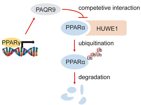 图:PAQR9竞争性结合HUWE1以保护PPARα蛋白稳定性