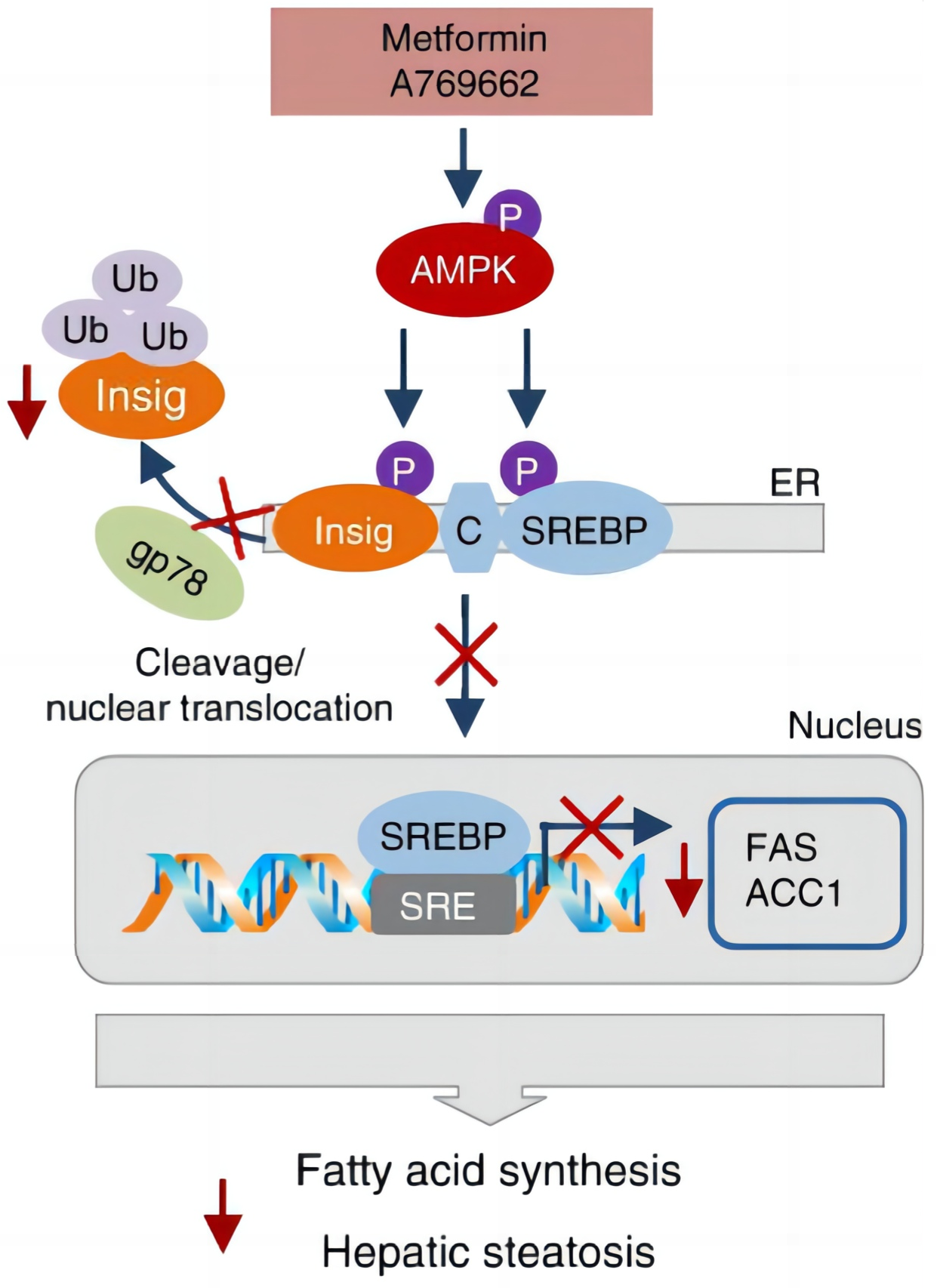 图.AMPK通过磷酸化修饰Insig调节脂肪酸合成