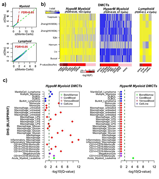 图:Meta分析揭示吸烟相关DNA甲基化信号主要出现在髓样细胞
