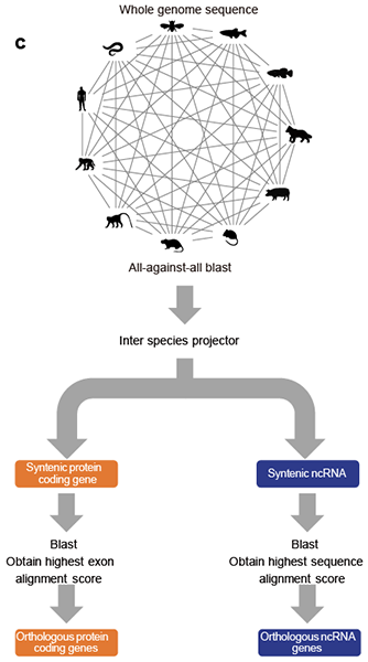 韩敬东研究组长期致力于衰老相关的机制研究。研究人员通过生物大数据分析发现衰老过程中lncRNAs的特性,并通过CRISPR功能筛选出能调控NFκB信号通路的衰老相关lncRNAs?;谘芯孔樵谒ダ先巳旱哪院脱貉芯恐谢竦玫南喙刈甲槭荩–heng et al, PNAS 2018; Xia et al, Nat Metab?2020)和NCBI数据库中10个物种衰老相关的转录组数据,将11个物种的基因组进行同源比对和转录本相似性两两组合分析,得到这11个物种间的蛋白编码基因和非编码RNA的进化保守性状态(图1)。按照进化年龄构建出11个物种的进化树,并把物种特异或保守数目标注在进化树中,得知大部分lncRNA都有物种特异性,并识别出9032 (26%)个人的lncRNA保守到其它物种中,在衰老相关的蛋白编码基因中显著保守,并随进化年龄富集程度增加;在血液衰老相关的lncRNA中,其保守程度也随着进化年龄而增加;与脑部衰老相关的lncRNA的保守程度在脊椎动物中有所增加。同样,功能相关的lncRNA会随着进化年龄而出现富集程度的增加。为了研究与衰老相关的lncRNA是否受到更复杂的转录调控,研究人员扫描了转录因子在基因的启动子区域,并计算其富集分数,发现与衰老相关的蛋白编码基因和lncRNA的转录因子的富集程度比非衰老相关的基因更强,有40个转录因子的motif富集在9个脊椎动物与衰老相关的lncRNAs中,其中包含RELA,RUNX1和BCL6。