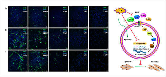 图1. 呕吐毒素DON影响肌肉细胞肌管形成