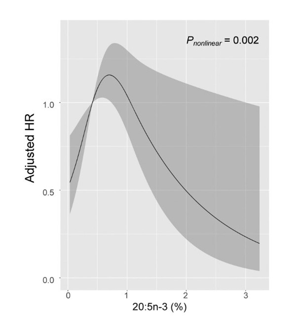 图2. 红细胞膜20:5n-3水平与缺血性中风的非线性关系