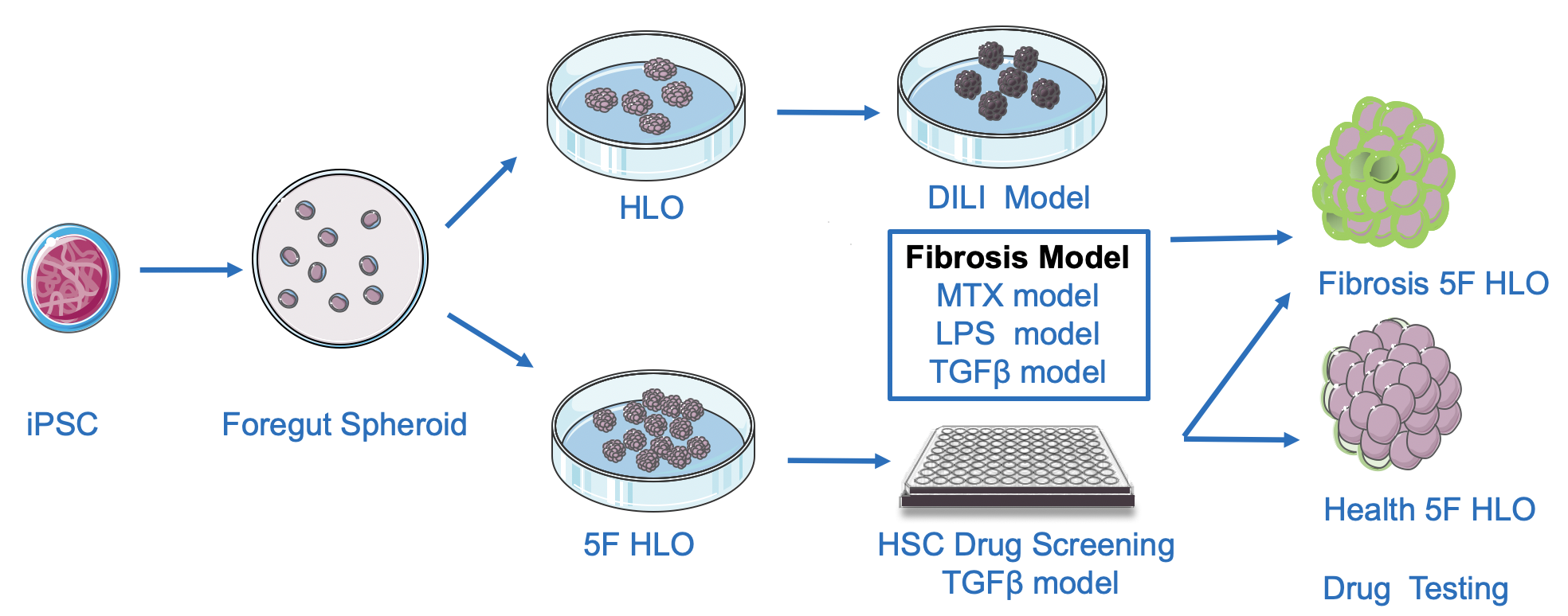 图:人iPSC衍生的肝类器官应用于药物肝毒性评估及抗肝纤维化药物的筛选