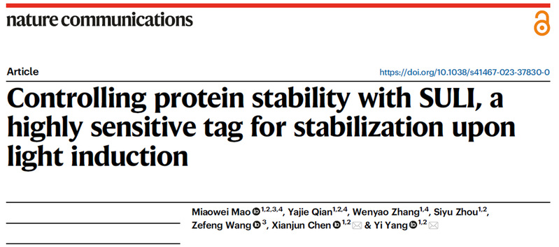 近日,华东理工大学药学院、生物反应器工程国家重点实验室、光遗传学与合成生物学交叉学科研究中心杨弋教授团队与中国科学院上海营养与健康研究所科研团队在蛋白质光遗传学控制技术研究中取得突破性进展,在国际学术期刊《自然—通讯》上发表了题为“Controllingprotein stability with SULI, a highly sensitive tag for stabilization upon lightinduction”的研究文章。