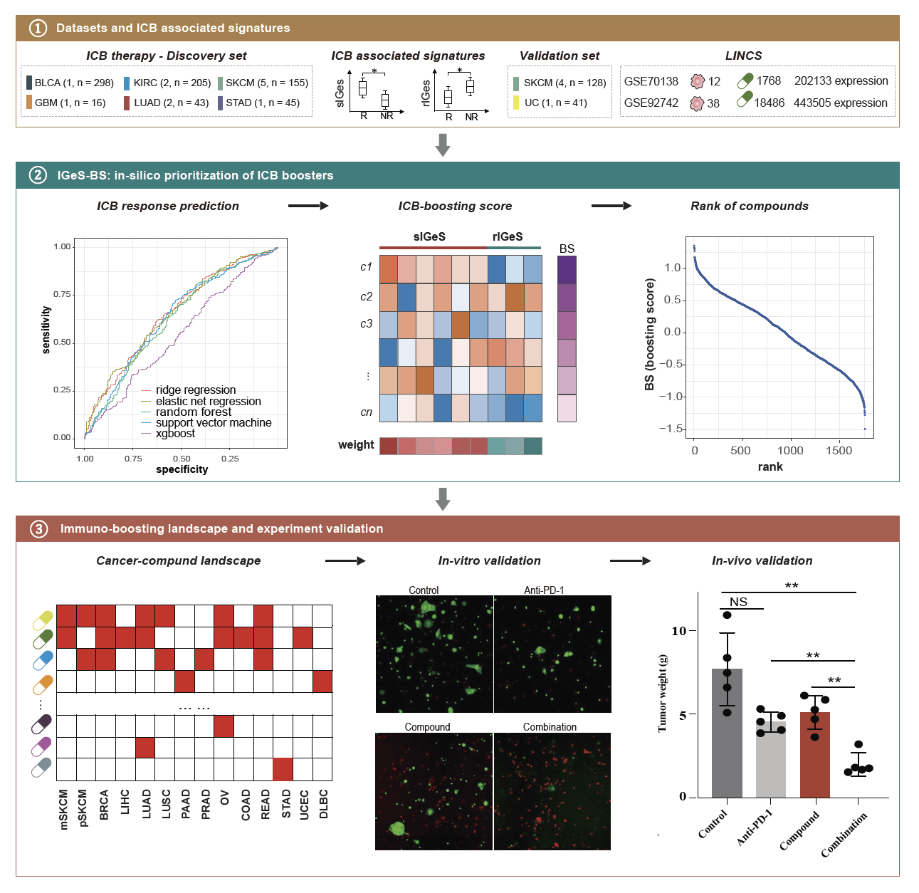 图:免疫治疗联用药物筛选的计算方法和实验验证
