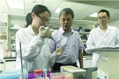 李林(中)指导学生做实验
