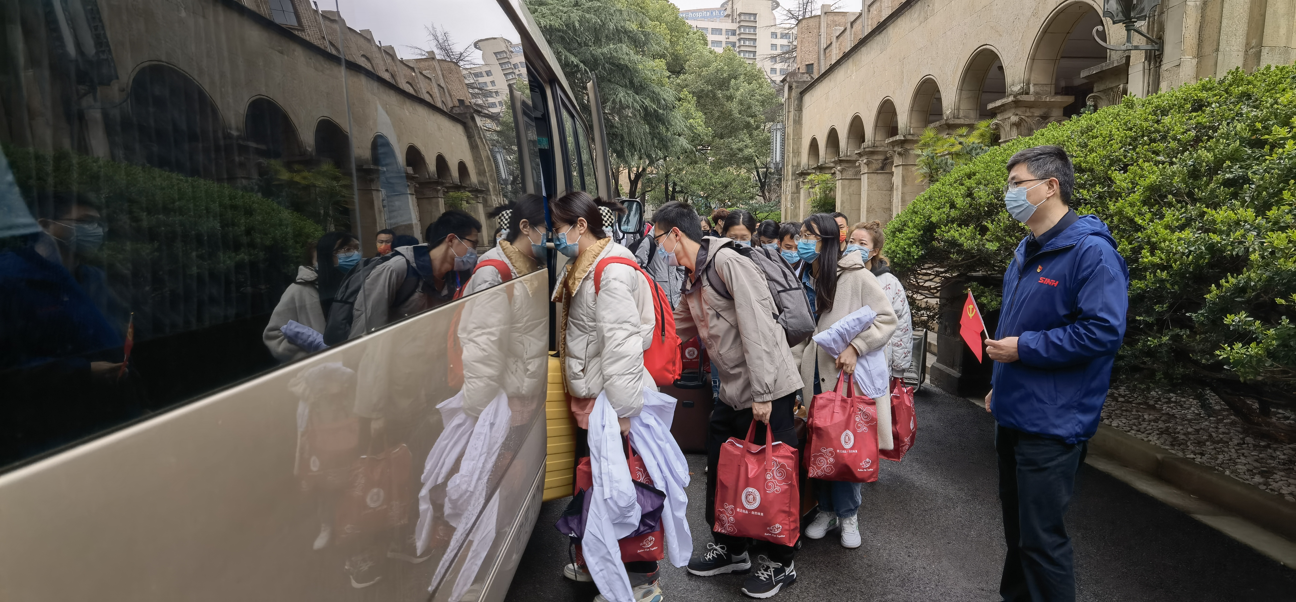 3月18日,澎湃新闻(www.thepaper.cn)获悉,18日上午,中科院上海分院系统在上海市徐汇区岳阳路320号举行简短“出征”仪式。中科院上海营养与健康研究所(以下简称“营养与健康所”)核酸检测志愿队首批28名志愿者、中科院分子细胞卓越中心首批17名志愿者、中科院上海巴斯德所首批14名志愿者,会同其他兄弟单位的志愿者,一同启程奔赴上海市嘉定区核酸检测应急实验室,支援抗击新冠疫情。