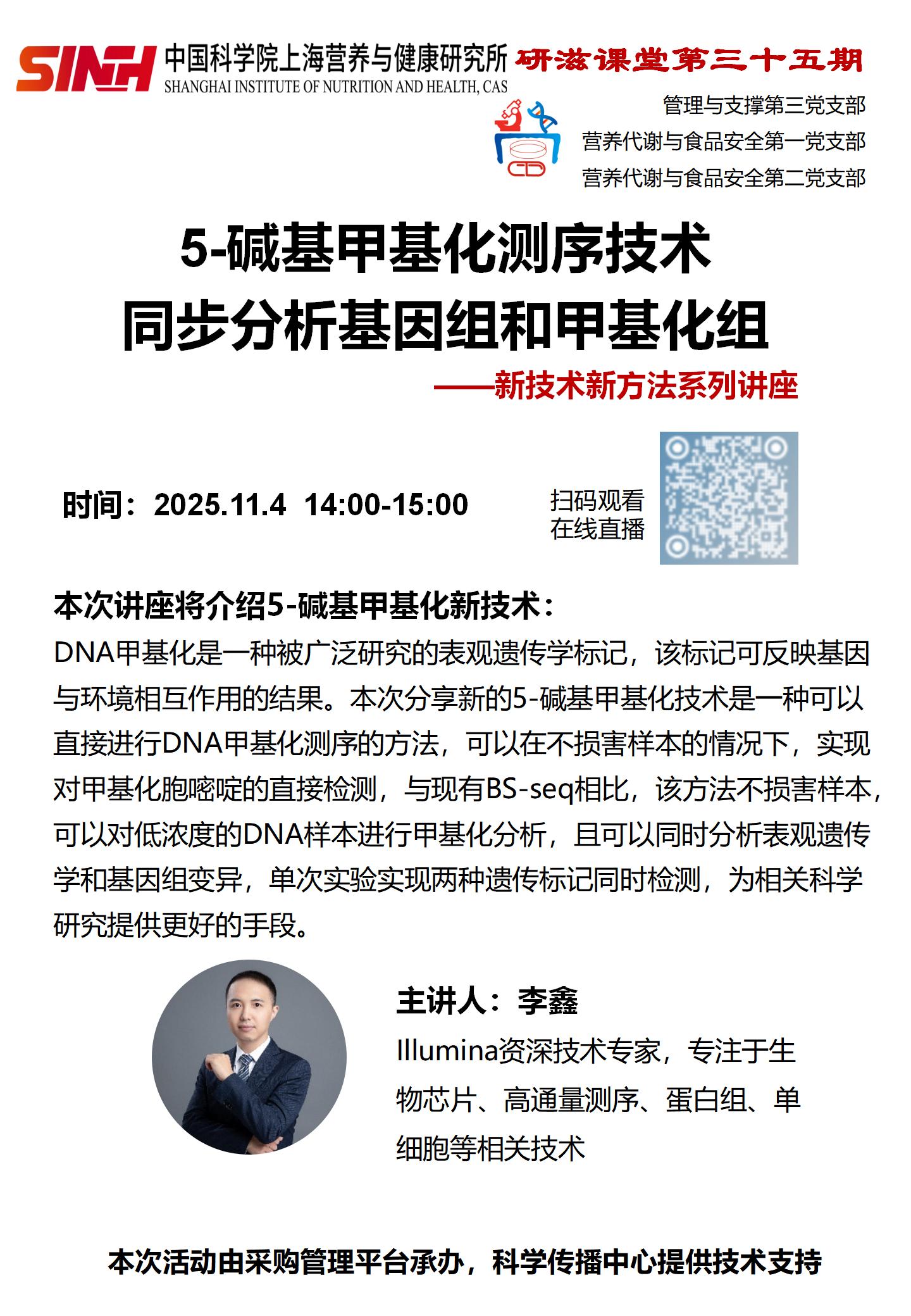 11月4日|5-碱基甲基化测序技术同步分析基因组和甲基化组-研滋课堂