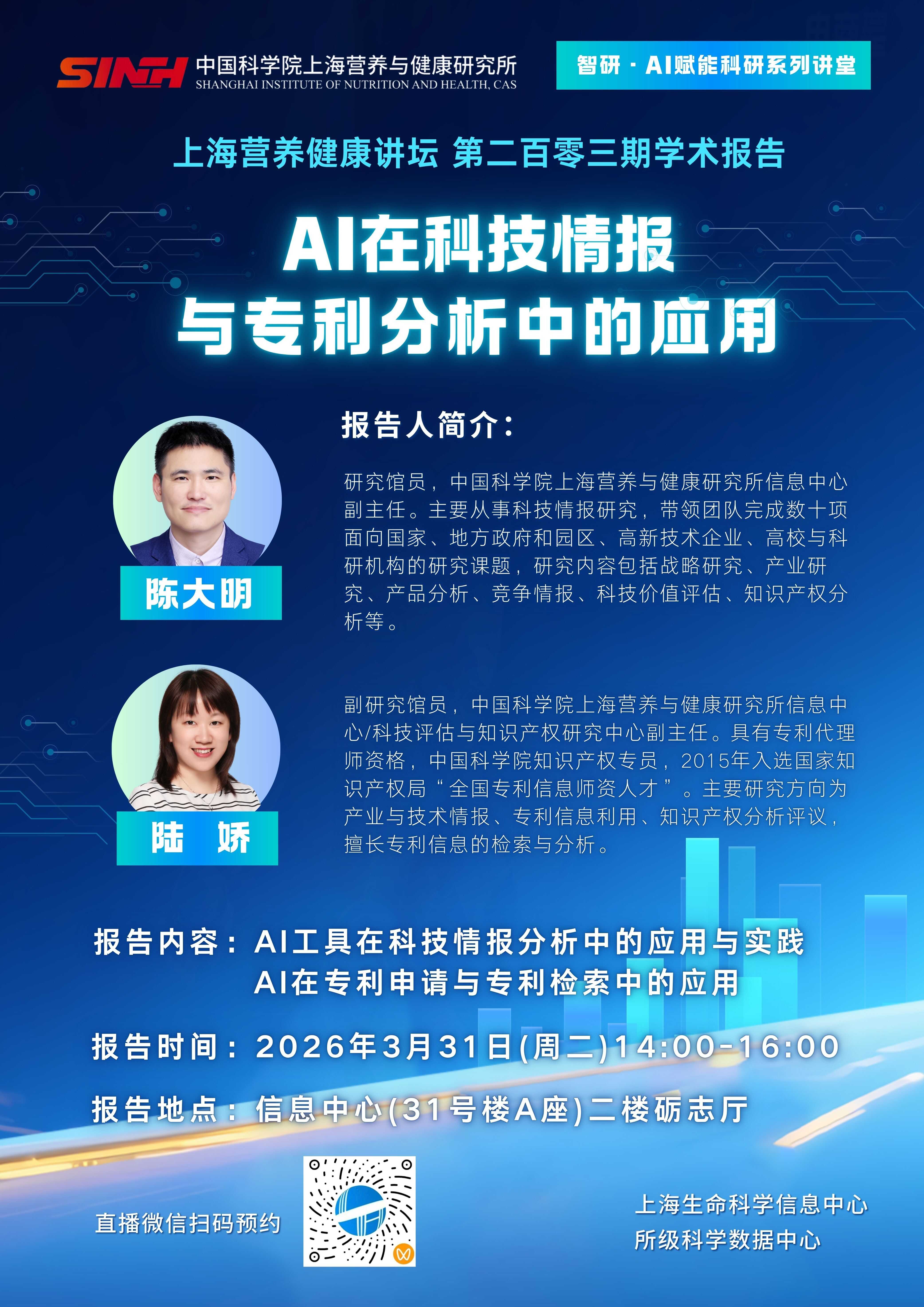 3月31日|AI在科技情报与专利分析中的应用-上海营养健康讲坛