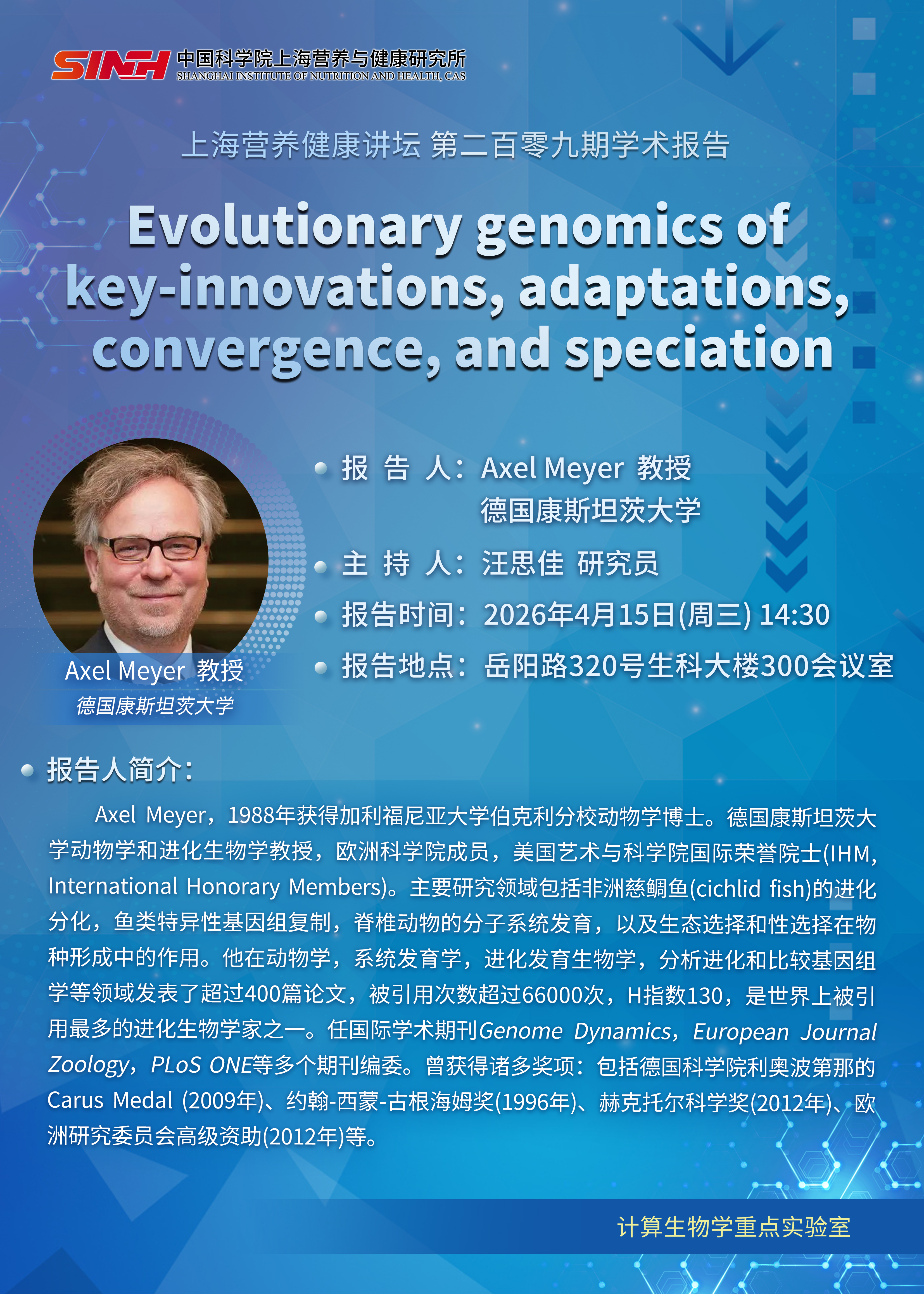 4月15日|Evolutionary genomics of key-innovations, adaptations, convergence, and speciation-上海营养健康讲坛