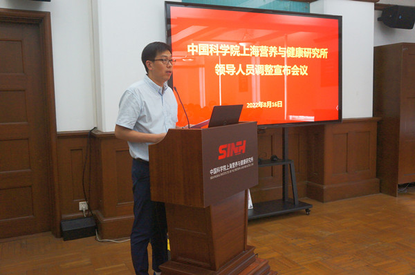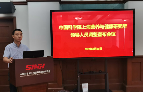 8月16日上午,中科院上海营养与健康研究所召开领导人员调整宣布会议,上海分院分党组书记、沪区党委书记李正华,上海分院组织部门相关同志,研究所领导班子成员、两委委员、科研骨干代表、中层干部、党支部书记等40余人参加会议?;嵋橛缮虾7衷喝肆ψ试床恐魅渭孀橹刹看ΥΤず沃鞒?。