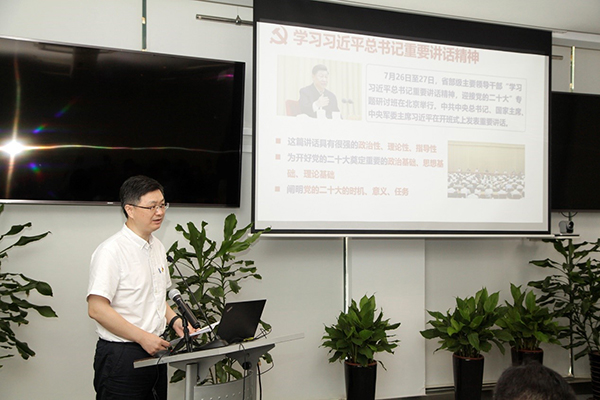 瞿荣辉带头领学了习近平总书记在省部级主要领导干部专题研讨班上的重要讲话精神。瞿荣辉表示,各级党员干部要对习近平总书记重要讲话精神加深理解,学深悟透,不断增强政治判断力、政治领悟力、政治执行力;要对标院党组工作要求,结合研究所实际,聚焦于提升研究所治理效能,带头发扬干事创业、改革创新精神,坚持一张蓝图绘到底,以绣花功夫把工作做扎实、做到位。他表示,希望通过参会各方共同努力,将此次党委理论学习中心组联学调研转化为务实有效的措施和积极的工作成效,切实发挥党组织的战斗堡垒作用,推动研究所治理体系建设再上新台阶。
