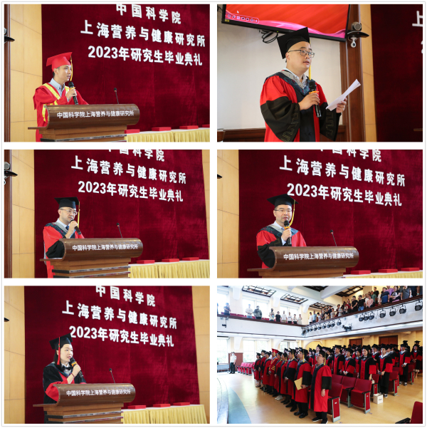 6月21日,中国科学院上海营养与健康研究所2023年研究生毕业典礼在生理楼报告厅隆重举行。营养与健康所副所长(主持工作)、学位评定委员会主席胡国宏,学位评定委员会副主席邵振,学位评定委员会委员李于、张国庆,导师代表王跃祥、黄涛、金颖、孙宇、熊燕、杨黄恬,2022届、2023届毕业生以及研究生部教育管理人员参加了本次典礼。毕业典礼由邵振主持。