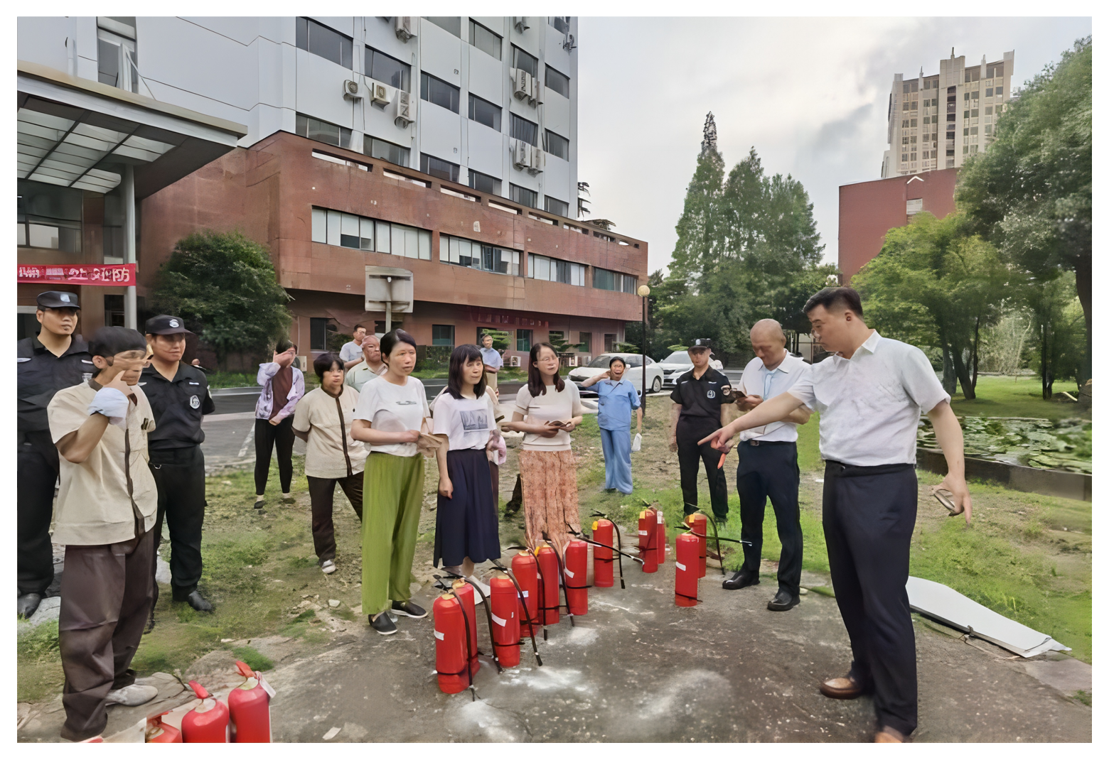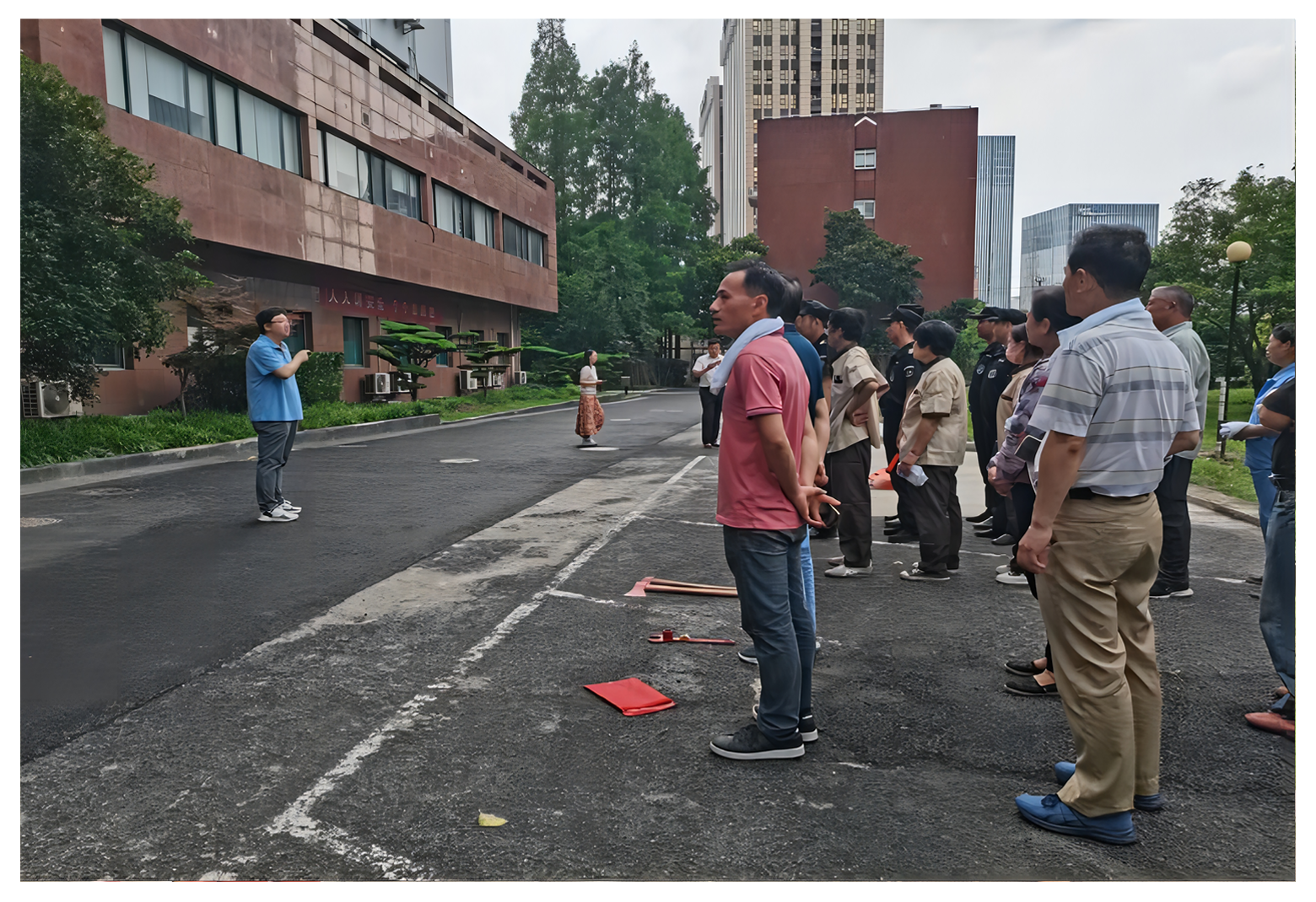 本次消防演练共分逃生疏散、应急救援、灭火实操、总结四个环节。全体参与人员根据演练方案,在各环节衔接顺畅,顺利完成演练。期间综合管理处和物业对各类消防器具使用方法、逃生与急救的注意事项进行了讲解。