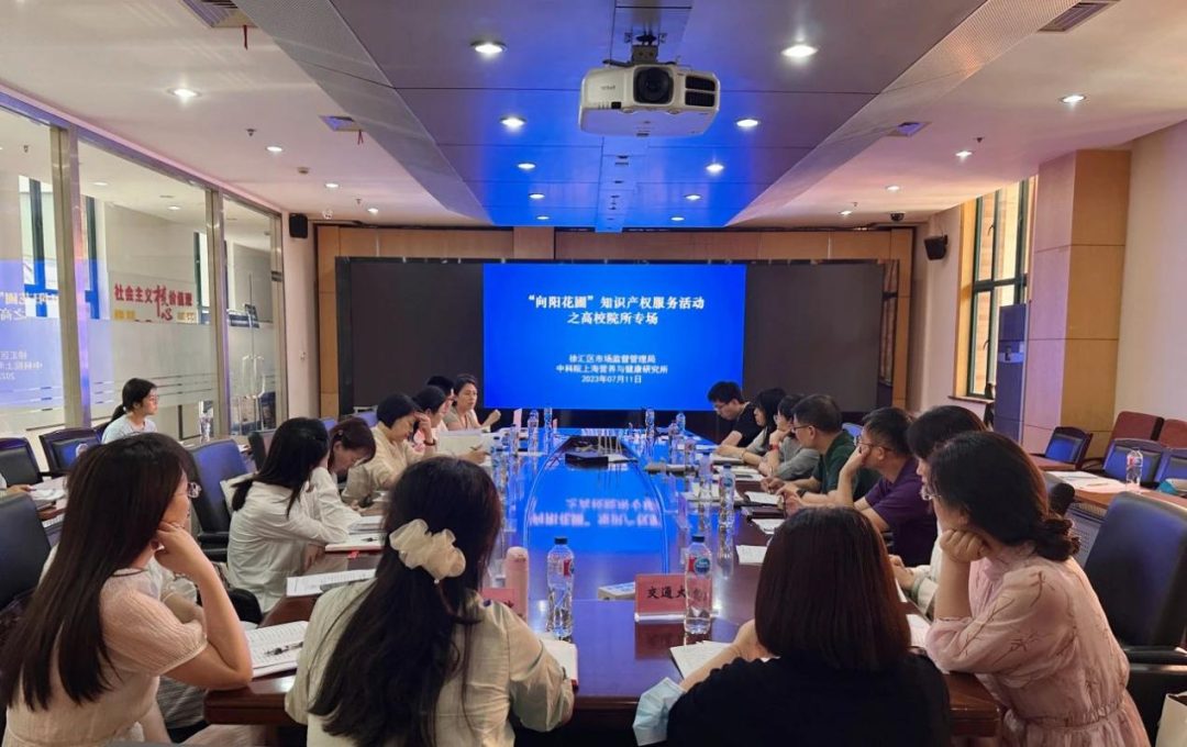 7月11日下午,中国科学院上海营养与健康研究所与徐汇区市场局联合举办 “向阳花圃”法宣沙龙之知识产权服务高校院所专场活动。徐汇区区市场局党组副书记、副局长曾鸣,知产发展科、法规科、知产?;た聘涸鹑?,上海知识产权交易中心、上海交通大学、复旦大学医学院、华东理工大学、中国科学院上海营养与健康研究所、中国科学院上海有机化学研究所、中国科学院分子细胞科学卓越创新中心等十余所高校、科研院所代表出席活动。