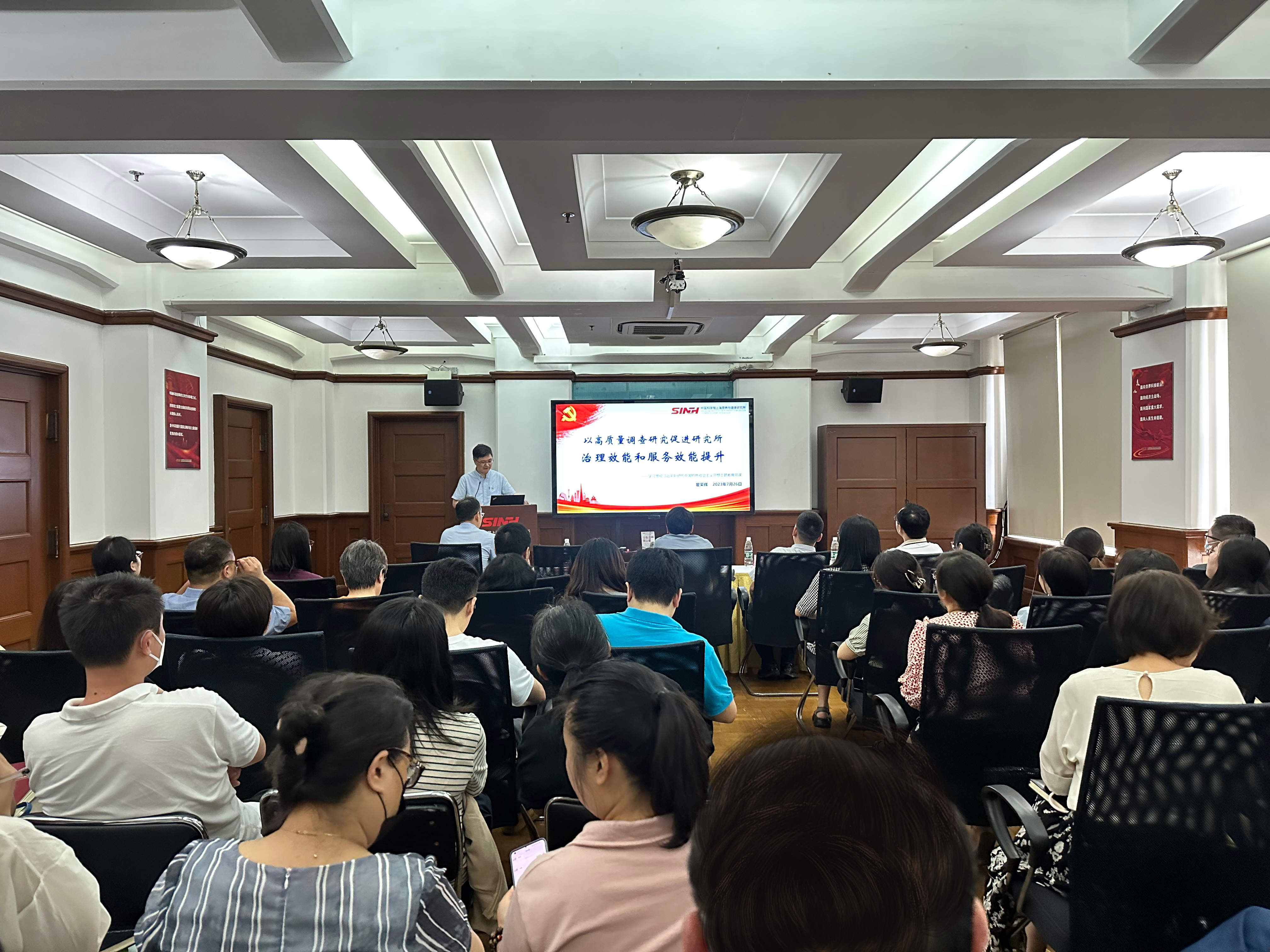 7月26日,中国科学院上海营养与健康研究所召开学习贯彻习近平新时代中国特色社会主义思想主题教育专题党课报告会,中国科学院上海分院副院长、分党组成员高召兵到会指导。所领导班子成员、两委委员、全体管理与支撑部门工作人员70余人参加了会议。会议由党委书记瞿荣辉主持。
