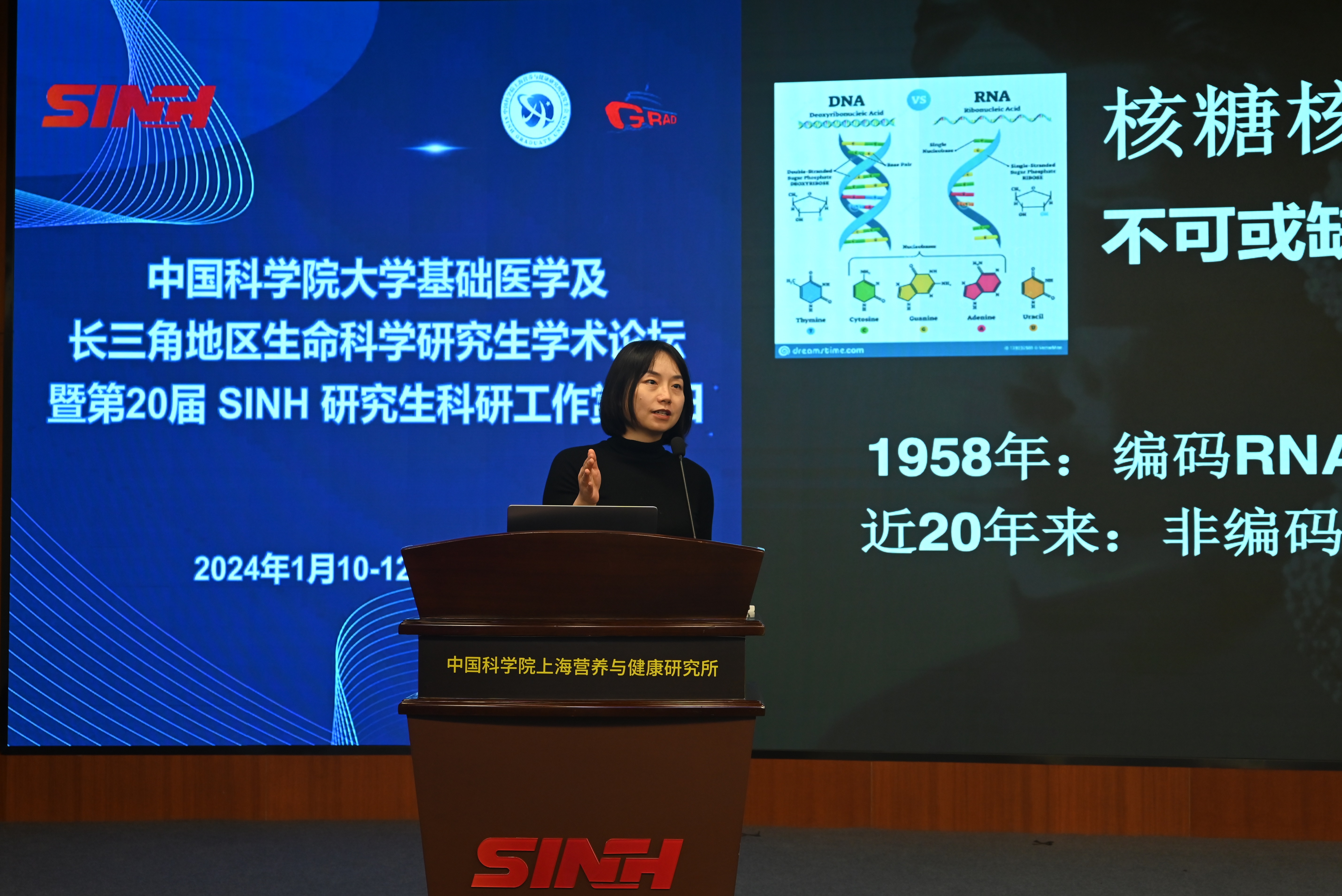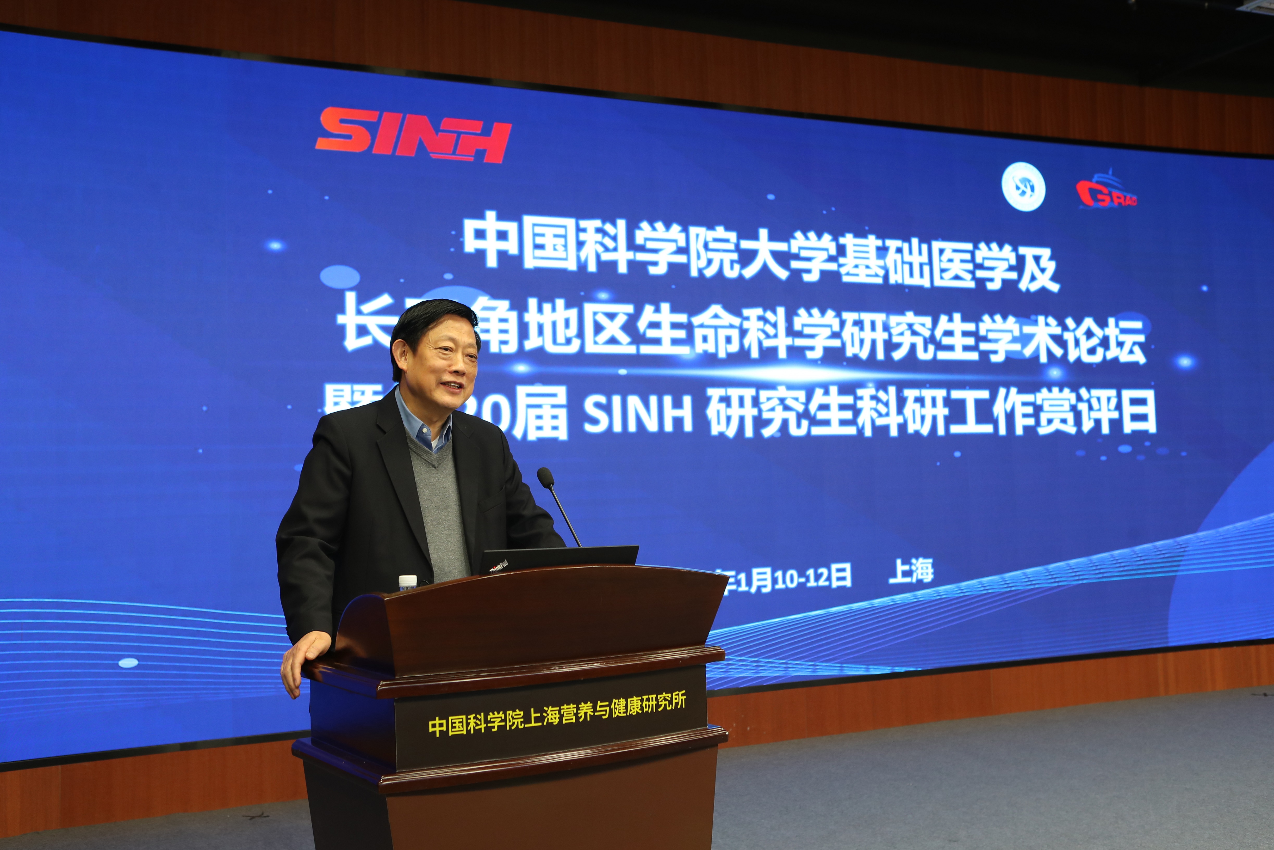 1月10日-12日,由中国科学院上海营养与健康研究所主办的中国科学院大学基础医学及长三角地区生命科学研究生学术论坛暨第20届 SINH 研究生科研工作赏评日(英文简称GRAD)活动在上海顺利举办。出席本次论坛的嘉宾包括中国科学院大学副校长金德鹏、中国科学院上海分院副院长高召兵、中国科学院上海分院团委书记、教育处负责人过宣帆、广州国家实验室李亦学研究员、中国科学院分子细胞科学卓越创新中心陈玲玲研究员、苏州大学时玉舫教授、香港城市大学尹慧勇教授、上海交通大学医学院上海免疫学研究所李斌教授、中山大学徐春亮教授。营养与健康所党委书记瞿荣辉致辞并作主旨发言,论坛由副所长(主持工作)胡国宏主持。来自中国科学院10余家科学研究机构和长三角地区5所高校的200余名师生参加本次论坛。