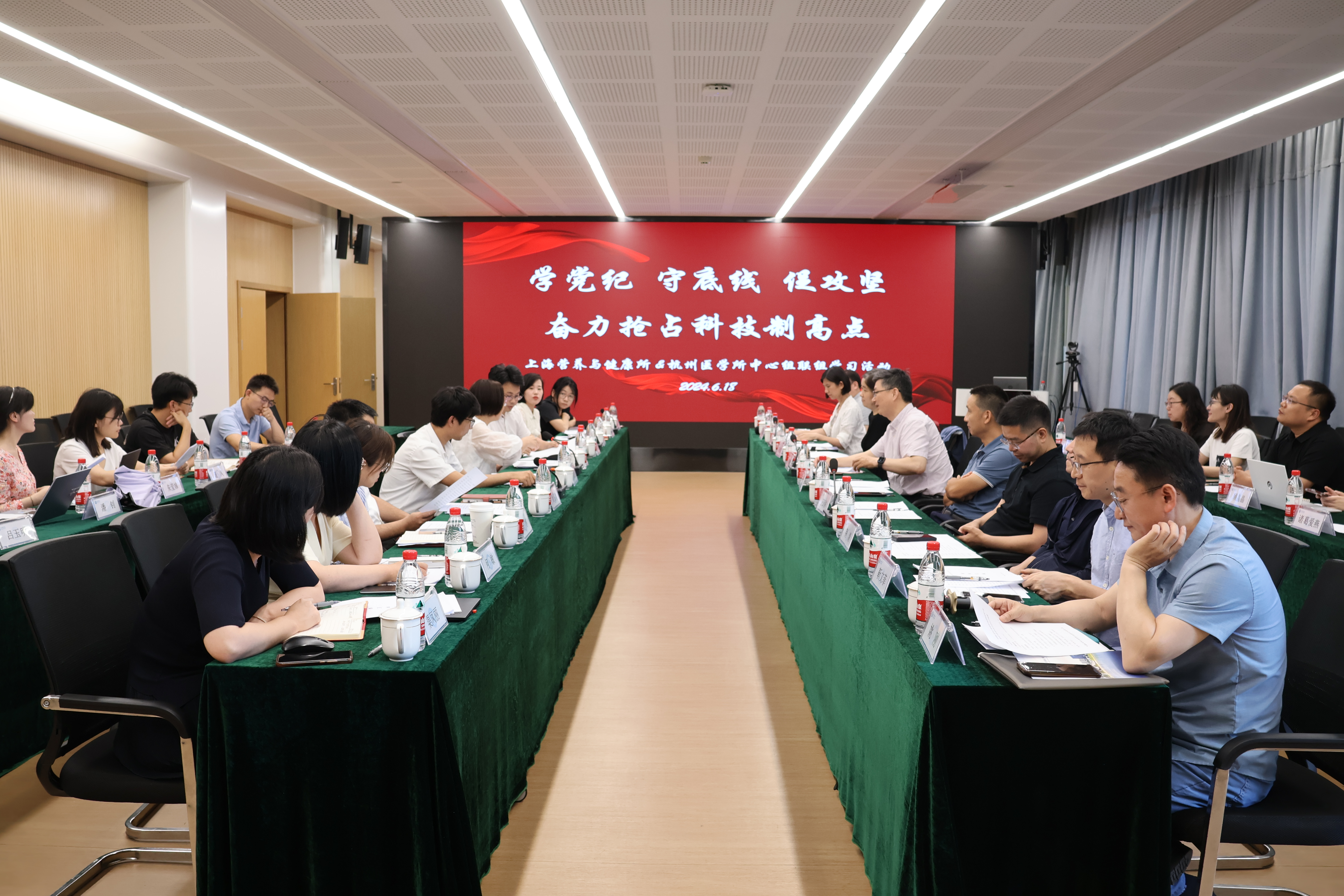 为推动党纪学习教育走深走实,加强基层党委联建共建,6月18日,中国科学院上海营养与健康研究所和中国科学院杭州医学研究所联合召开党委理论中心组(扩大)学习会议。两所领导班子成员、党委委员、职能部门负责人等30余人参加会议?;嵋橛珊贾菀窖澄榧恰⒏彼じ呔鞒?。
