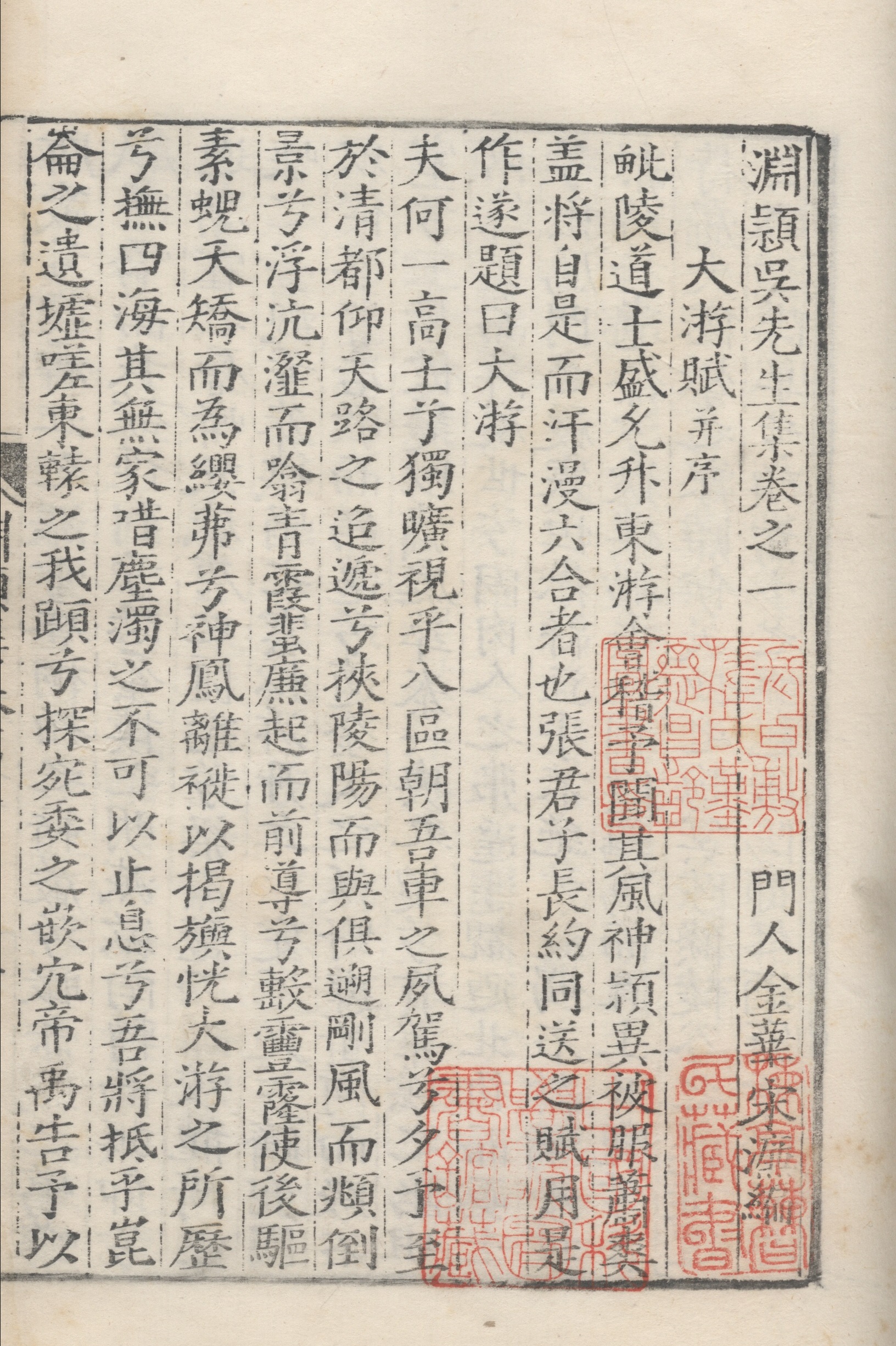 5.渊颖吴先生集十二卷,元吴莱撰,附录一卷,明嘉靖元年(1522)祝銮刻本。
