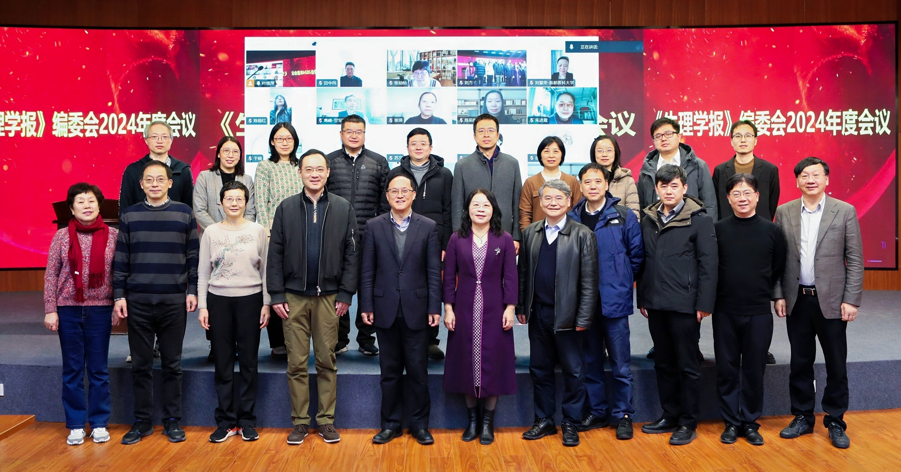 参会人员合影(正中大屏幕上显示的是在线参会编委)