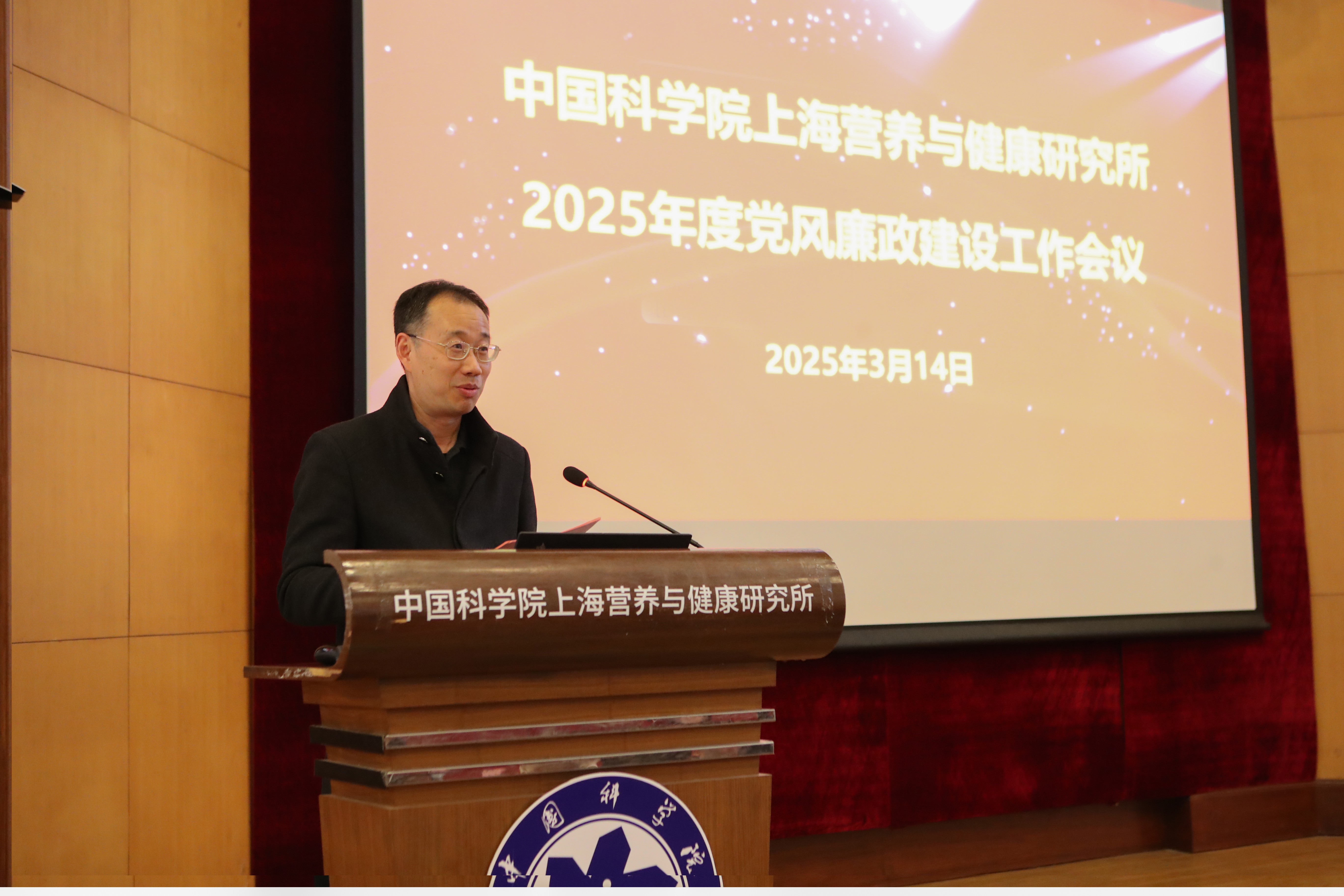 3月14日下午,中国科学院上海营养与健康研究所召开2025年度党风廉政建设大会。研究所领导班子成员、党委委员、所务委员、纪委委员、各基层党组织及群团组织负责人、职工代表,副高及以上专业技术人员、职能部门人员等120余人参加会议?;嵋橛杉臀榧遣苡乐鞒?。