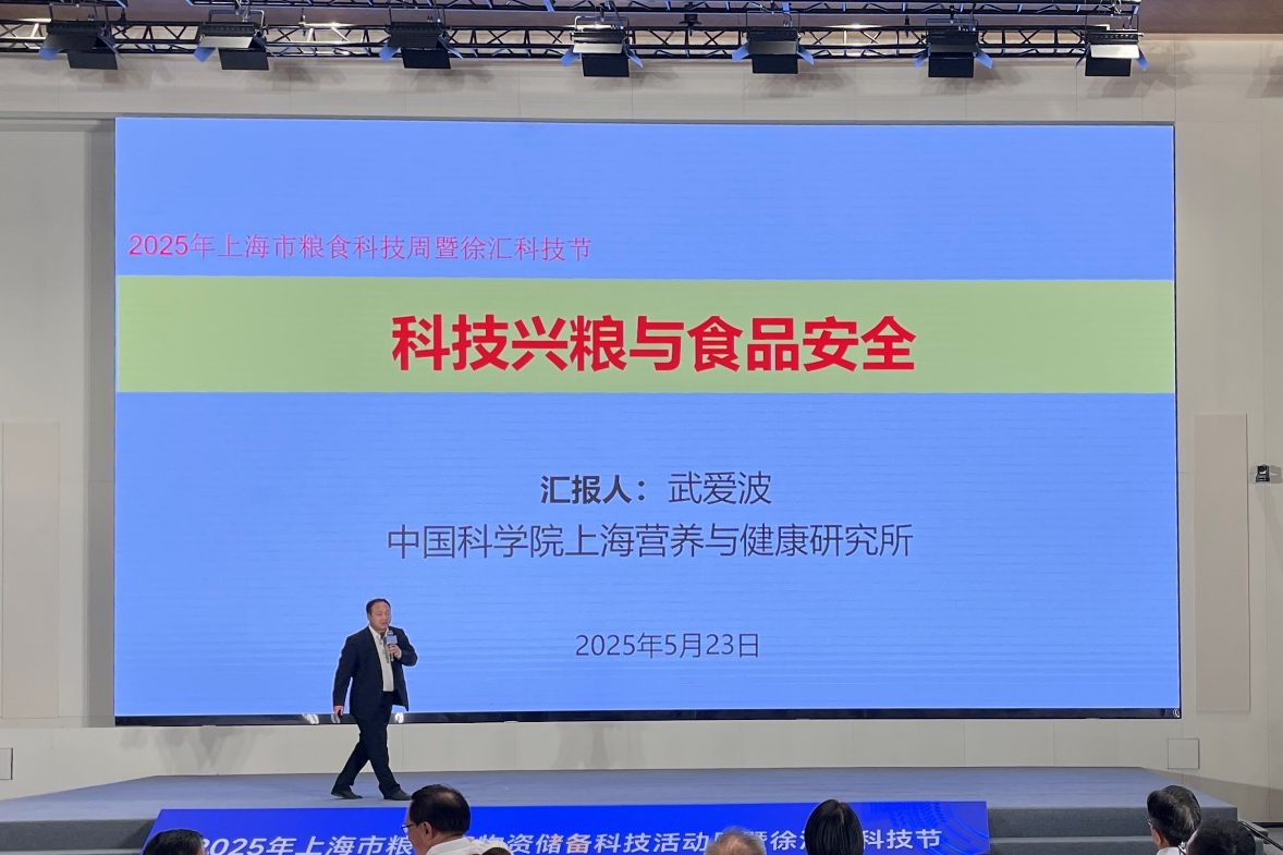 5月23日,“2025年上海市粮食和物资储备科技活动周暨徐汇区科技节”在漕河泾会议中心举行。作为受邀单位代表,营养与健康所武爱波研究员在大会上作题为“科技兴粮与食品安全”的主旨演讲。武爱波围绕“粮食安全是国家经济稳定的基石”,系统阐释了真菌毒素对粮食安全、食品安全造成的严重危害,强调了呕吐毒素作为主要真菌毒素污染之一应予重视;结合其领衔的工程实验室食品安全与真菌毒素部的专业优势,介绍了团队承担国家、上海市涉粮食安全相关检测监测工作任务、服务新兴产业的情况及相关成果产出;围绕“粮食绿色储藏减损与高值化利用”、“从源头保障特大城市粮食安全(上海地产紫麦)”不同维度,生动展示了通过科技赋能全链条保障粮食安全的实施路径。武爱波的报告揭示了科技兴粮稳产不仅是技术突破,更是一场关乎民生的持久战,唯有持续创新,才能端稳中国饭碗。