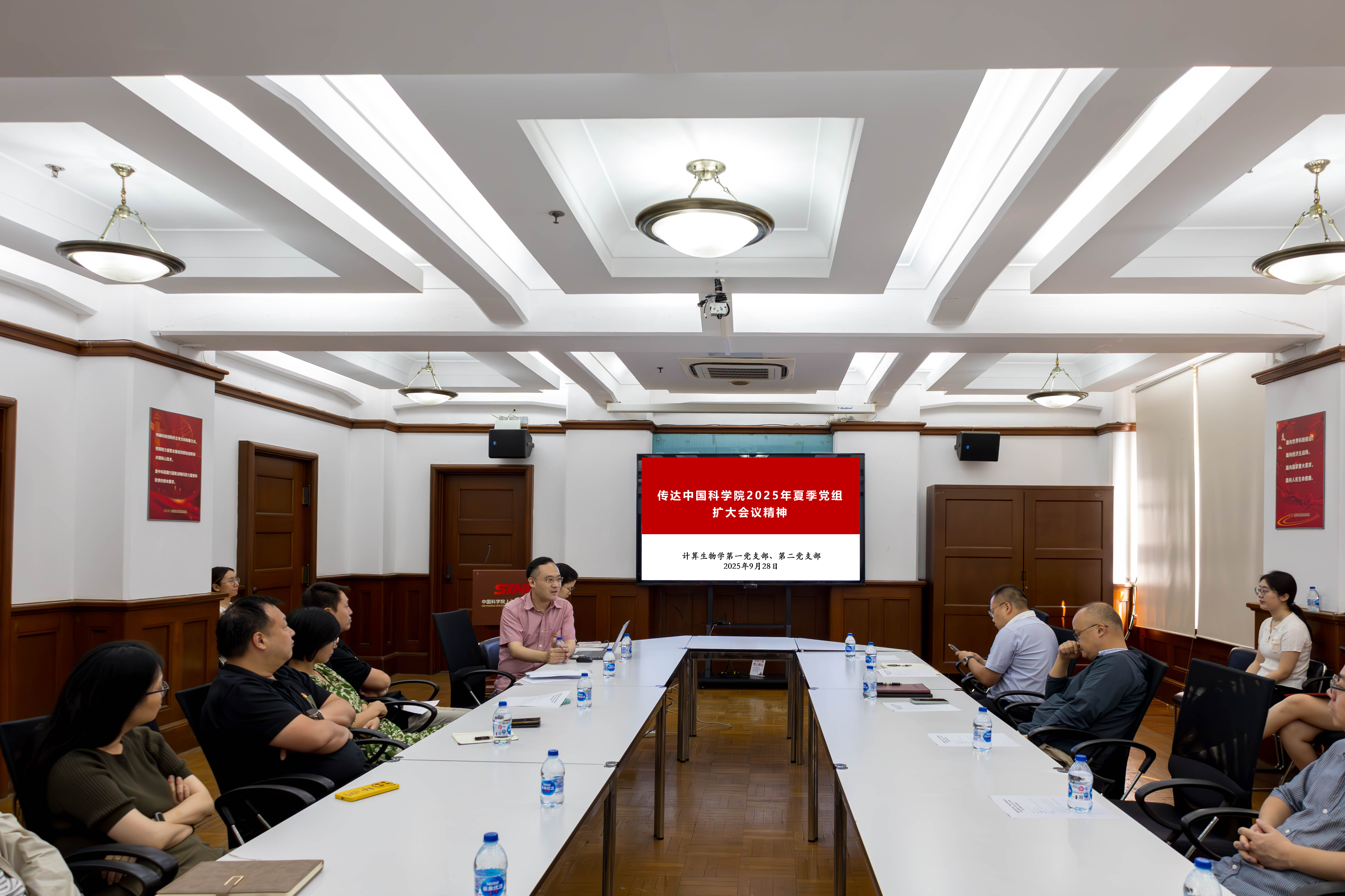 为推进党建与科研工作深度融合,9月28日,中国科学院上海营养与健康研究所计算生物学第一、第二党支部联合开展“建强科研战斗堡垒·加快抢占科技制高点”主题党日活动,会议邀请研究所所长、党委副书记汪思佳传达宣贯中国科学院2025年夏季党组扩大会议精神并作党课报告,支部全体党员参加会议。