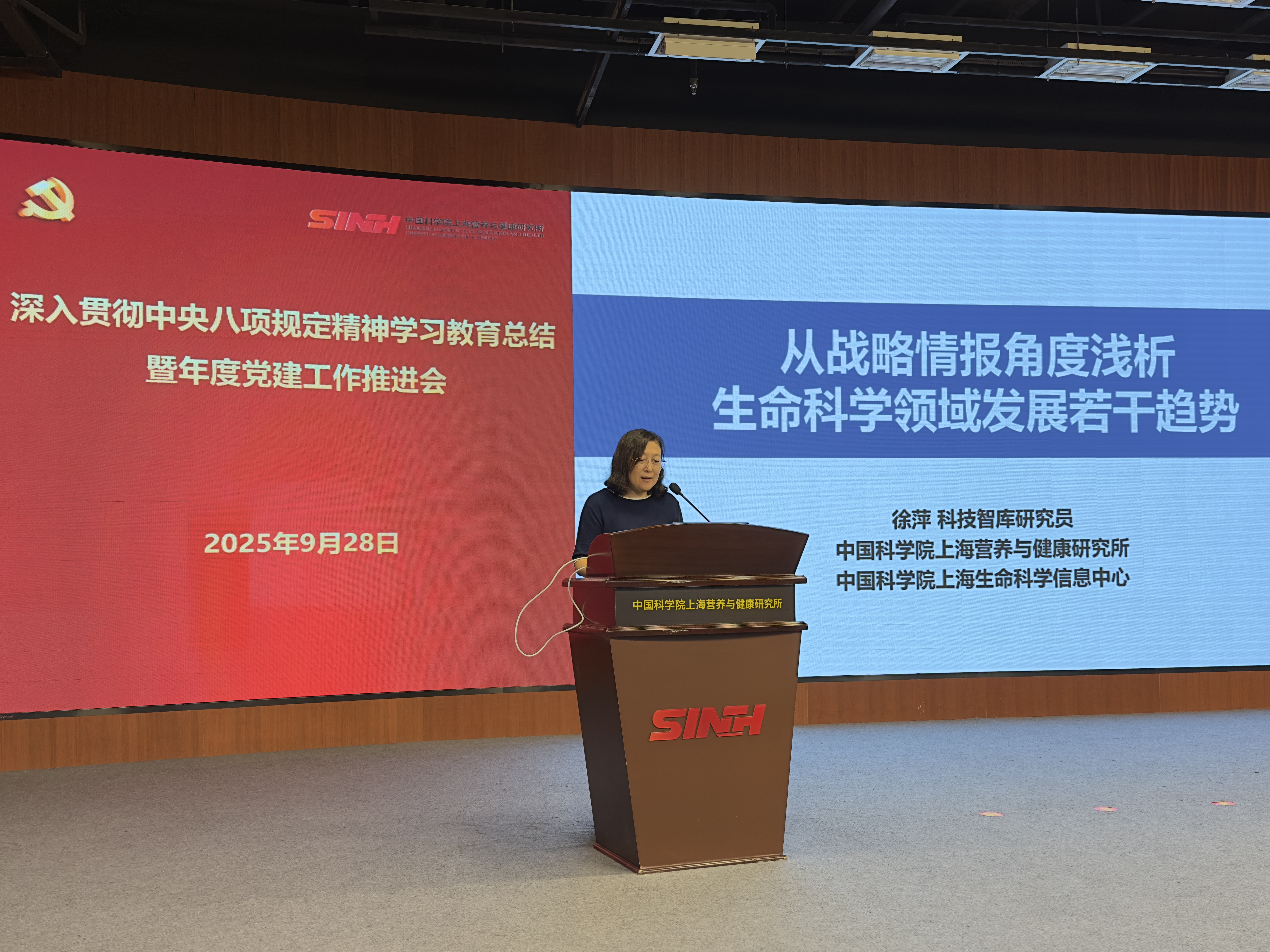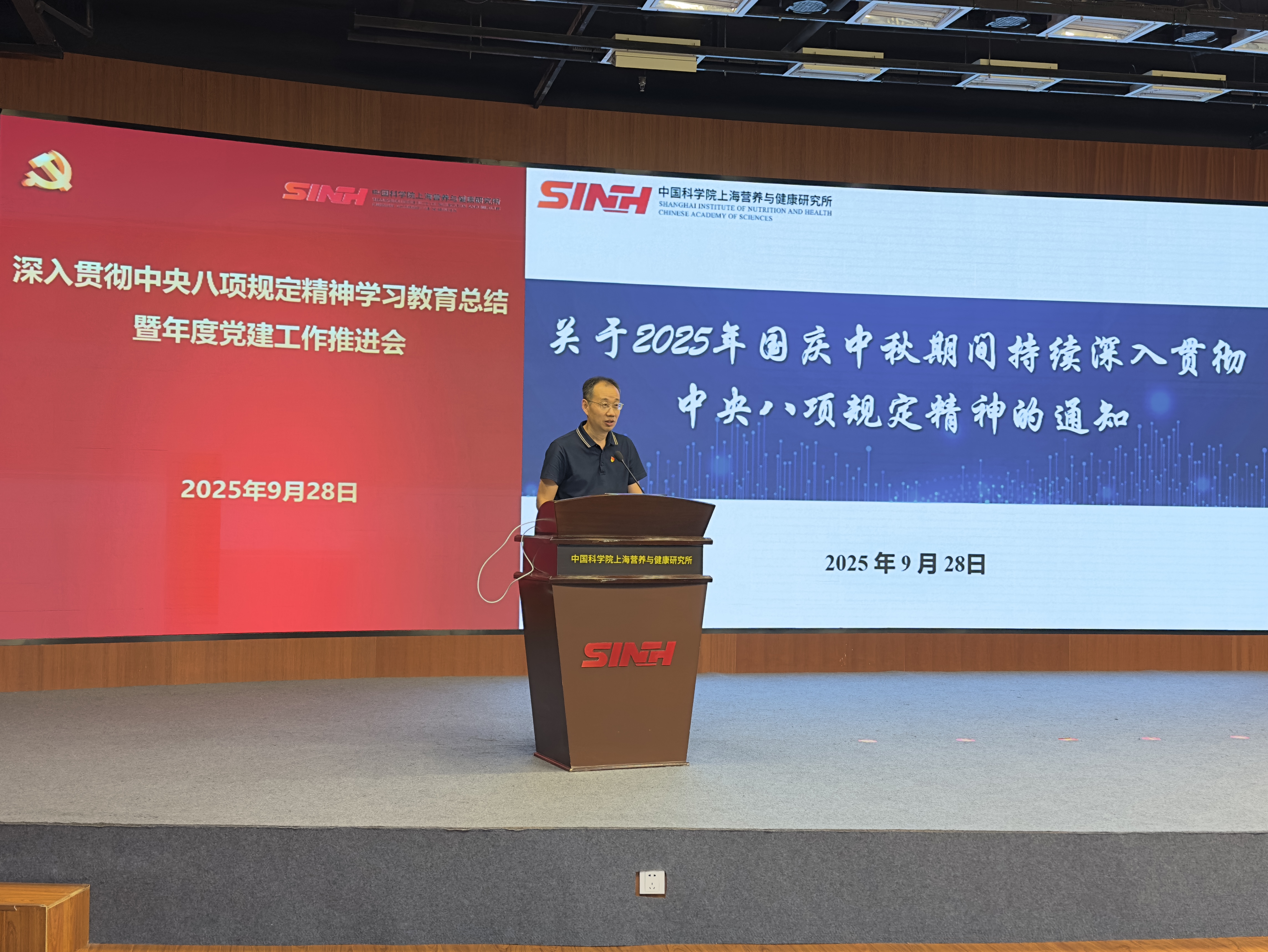 9月28日下午,中国科学院上海营养与健康研究所组织召开深入贯彻中央八项规定精神学习教育总结暨年度党建工作推进会,研究所“两委”委员、各党(总)支部书记、副书记等40余人参加会议,会议由纪委书记曹永主持。