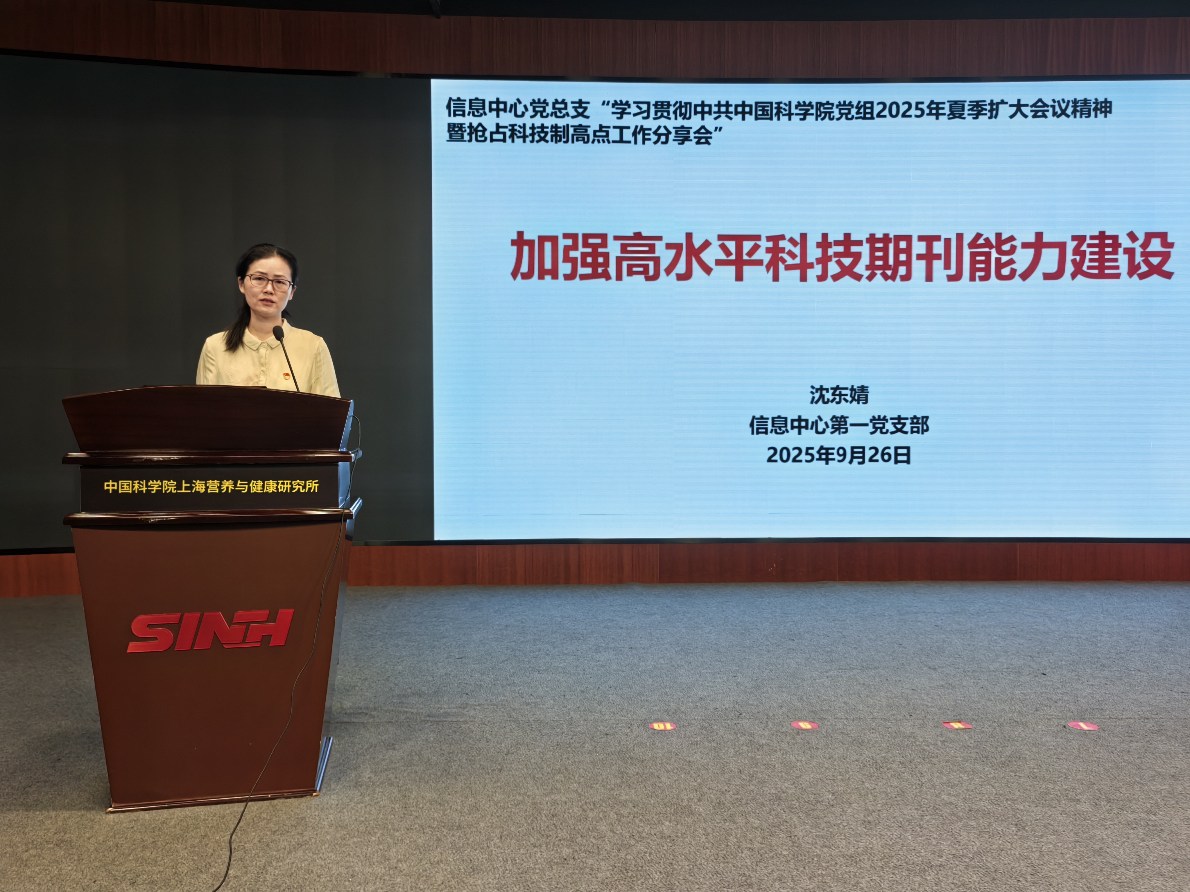 为深入学习贯彻中国科学院2025年夏季党组扩大会议精神,切实推动会议部署转化为具体工作实践,9月26日上午,中国科学院上海营养与健康研究所信息中心党总支在明德厅召开“贯彻院2025年夏季党组扩大会议精神暨抢占科技制高点工作”专题学习分享会。信息中心党总支书记熊燕,总支副书记、副主任陈大明及30余位党员参加会议?;嵋橛?/span>党总支副书记、副主任沈东婧主持,信息中心第二党支部承办。